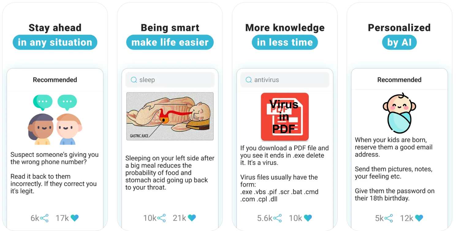 ► Unlock your potential with 10,000+ life hacks, tips & tricks, facts. ► Favorite best life hacks to save them on your profile. ► Headway in Relationship, Technology, Health, Money, Parenting, Daily life, and more! Get smarter and better 1% every