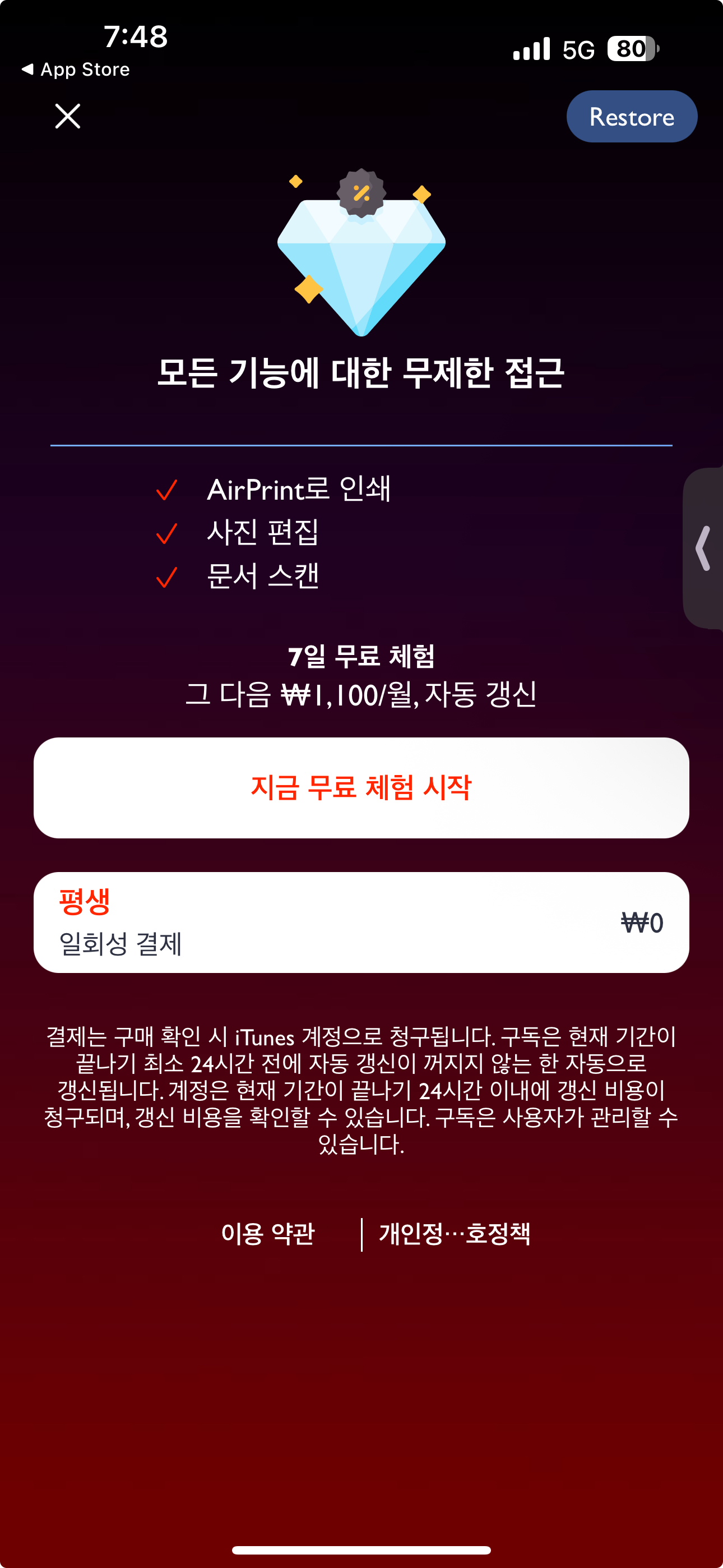 모바일 스캐너 포토 프린터 블루투스 스캐너 프린트마스터 앱이 무료 다운로드 프로모션 중 입니다.