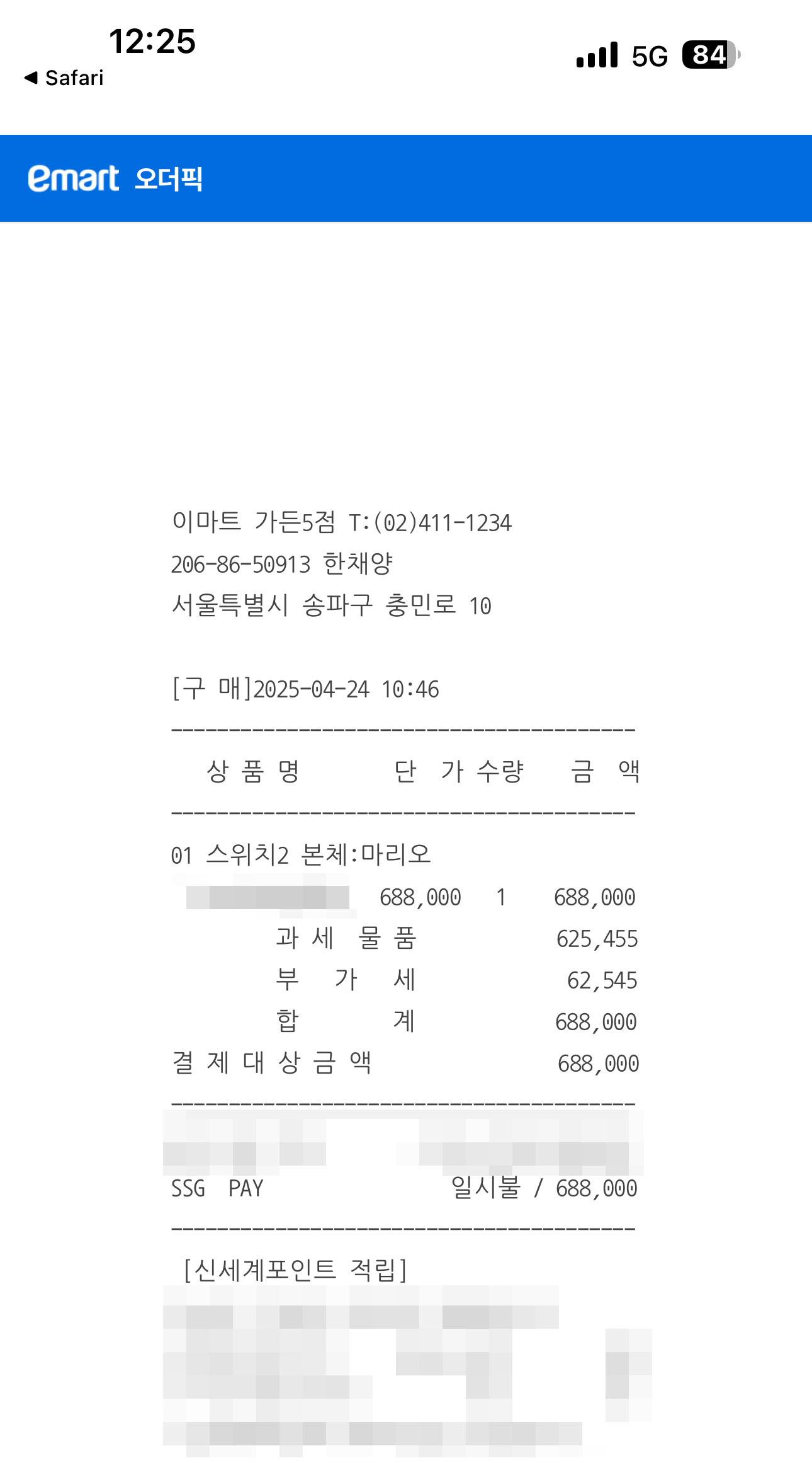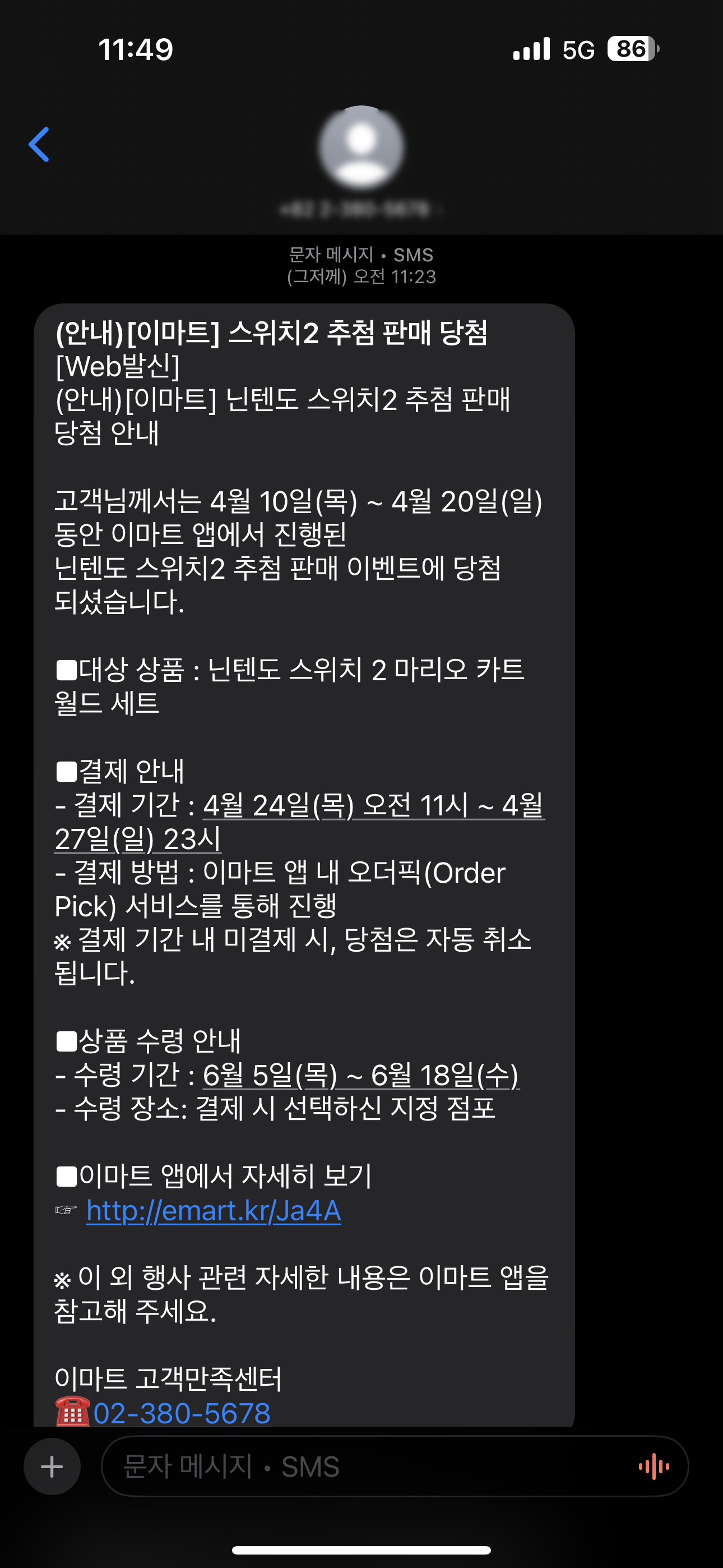 문자 받고 제일 먼저 이마트 결제 완료!