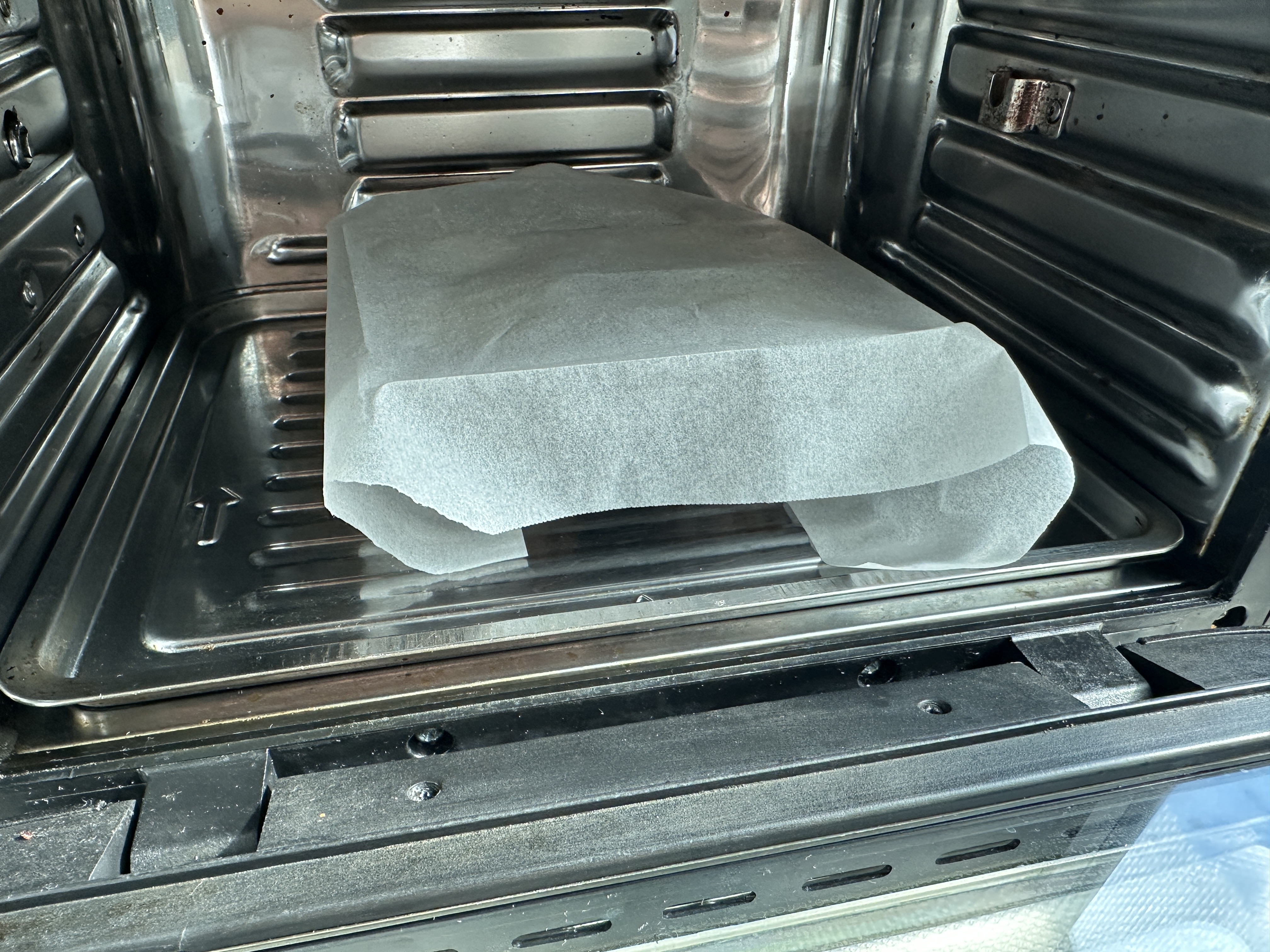 처음에는 반죽 위에 조리용 기름종이를 덮어봤는데,위에 덮지 마세요~!