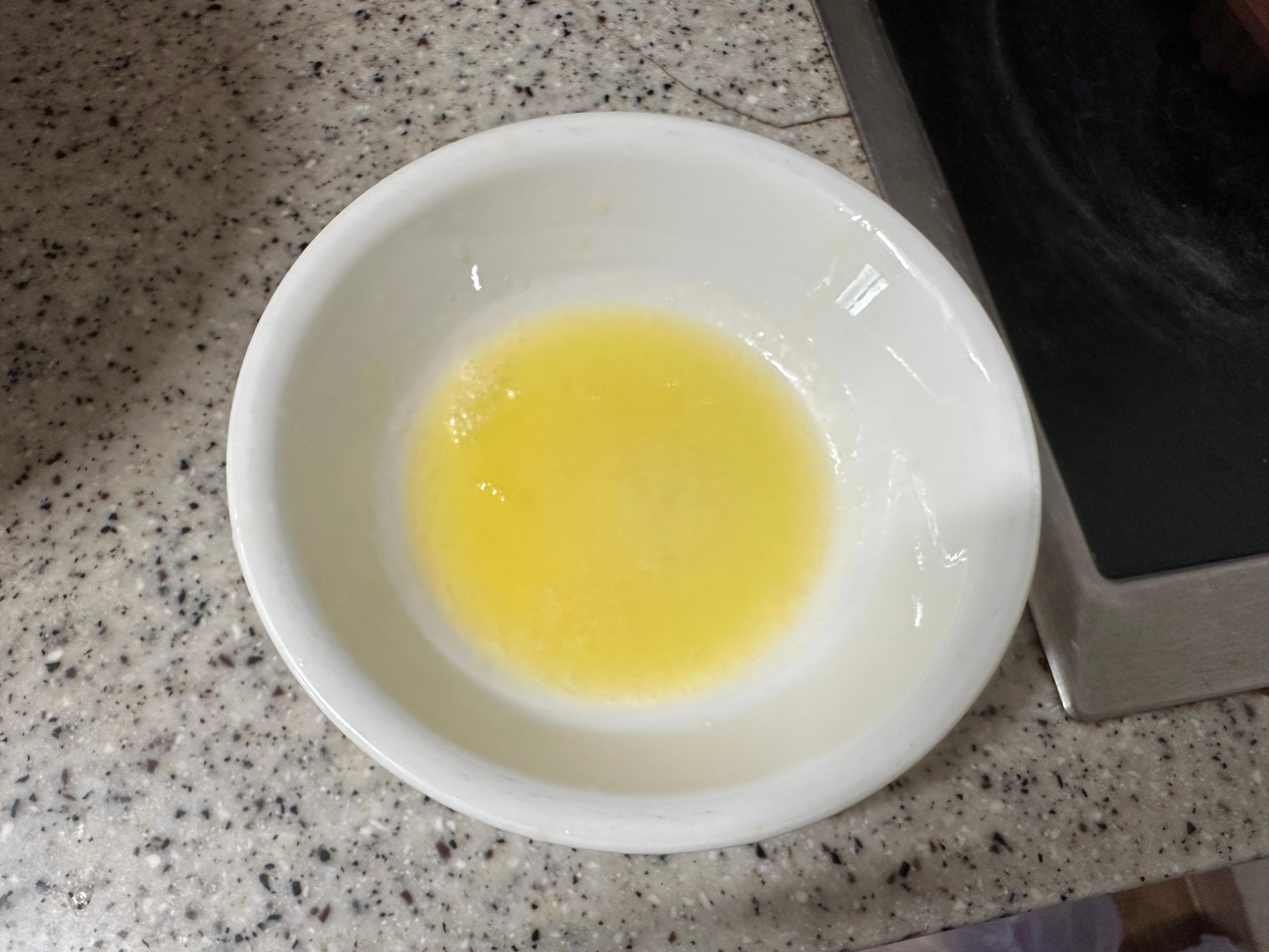 녹인 버터를 볼에 담고,섞기전 버터~