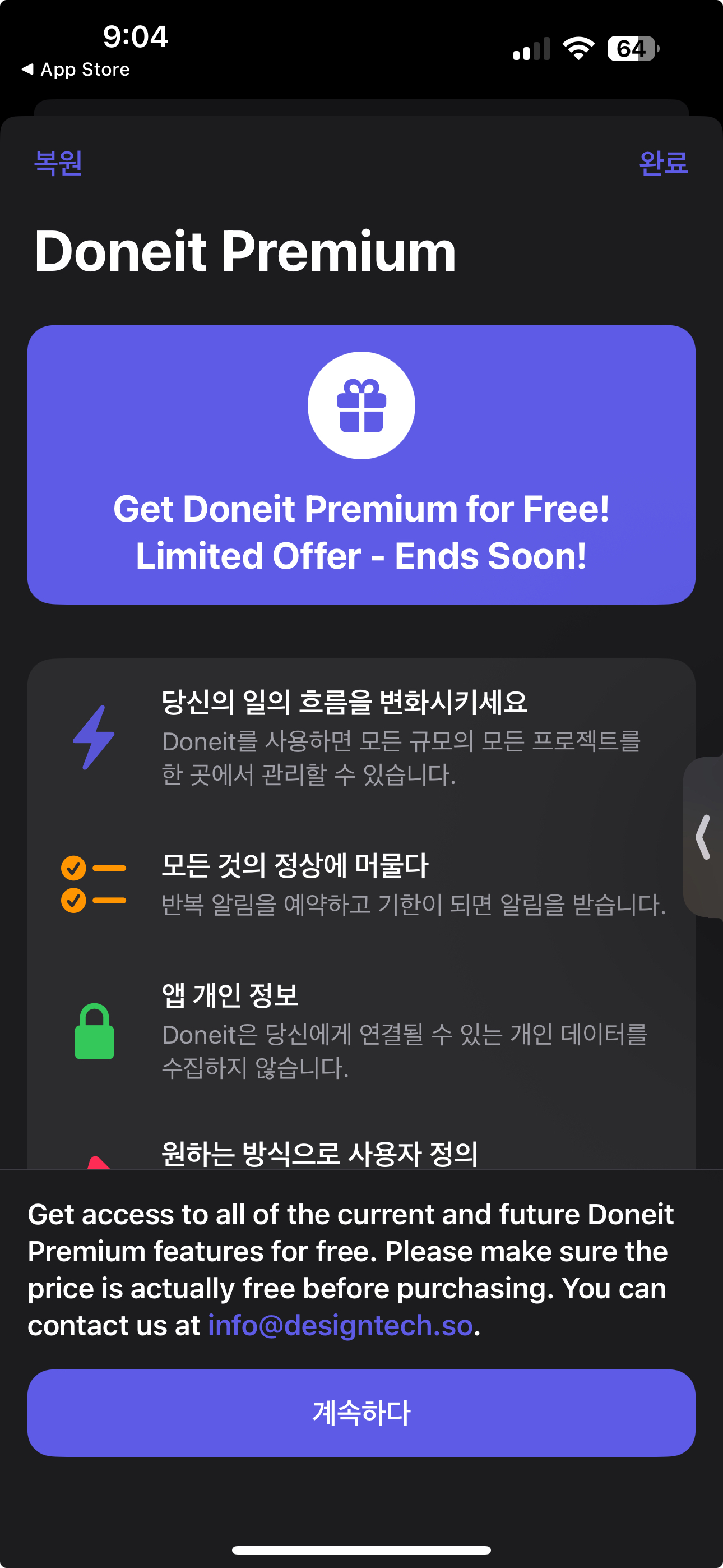 Project Management - Doneit 앱이 무료 다운로드 프로모션 중 입니다.