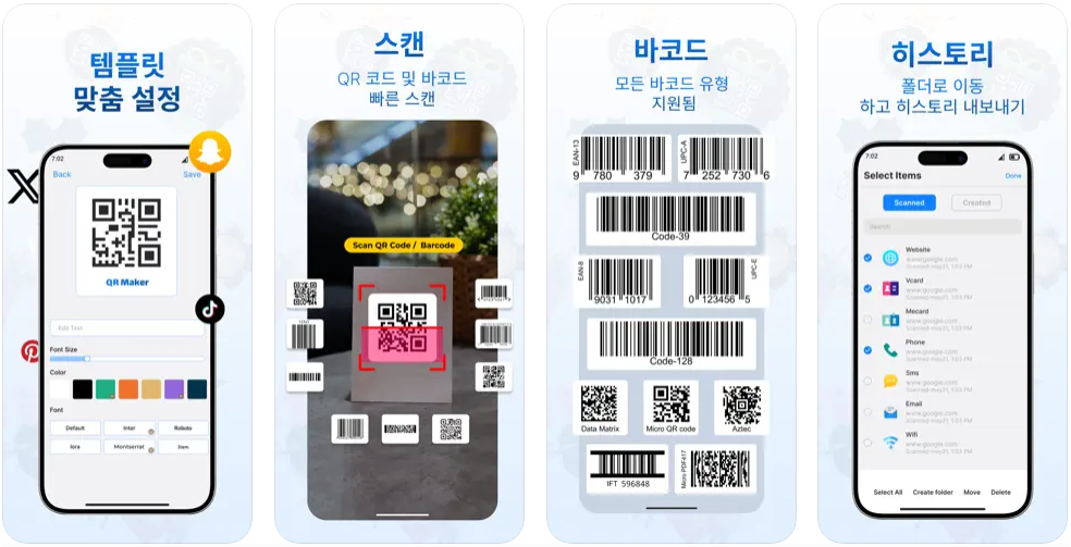 - 링크, WiFi, 연락처, SMS, 소셜 미디어 등에 대한 QR 코드 생성