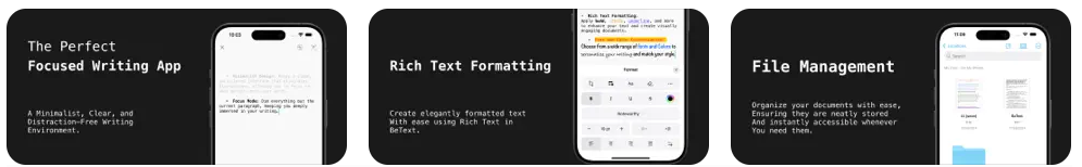 글쓰기 경험을 한 단계 업그레이드할 준비가 되셨나요? 지금 바로 BeText를 다운로드하고 방해 요소 없이 아름답고 간편한 환경에서 최고의 작품을 만들어 보세요.