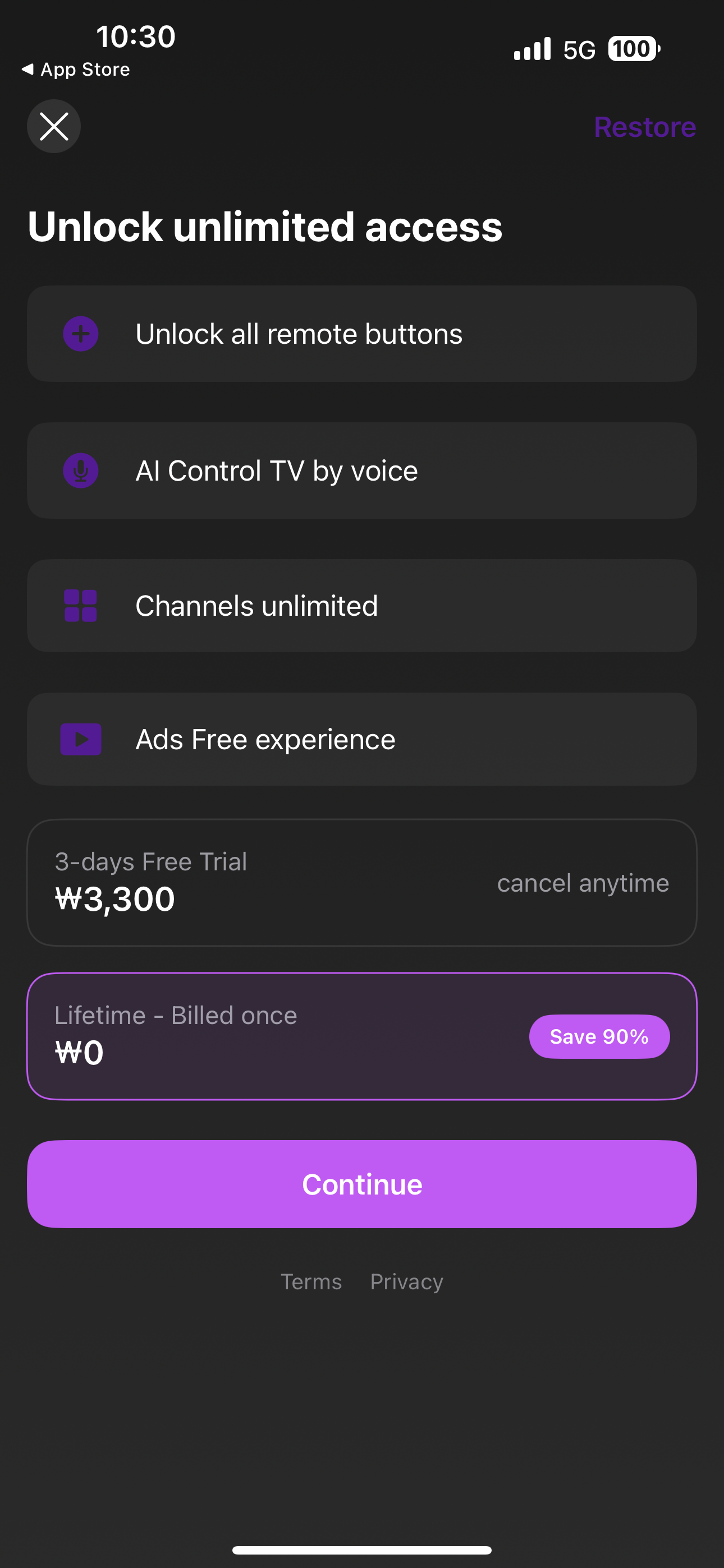 Smart Remote – Navigate your TV effortlessly with an intuitive remote interface. Voice Control – Control your TV hands-free using voice commands. One-Time Purchase, Lifetime Access! Unlock all features for just $19.99 – no subscriptions, no hidden