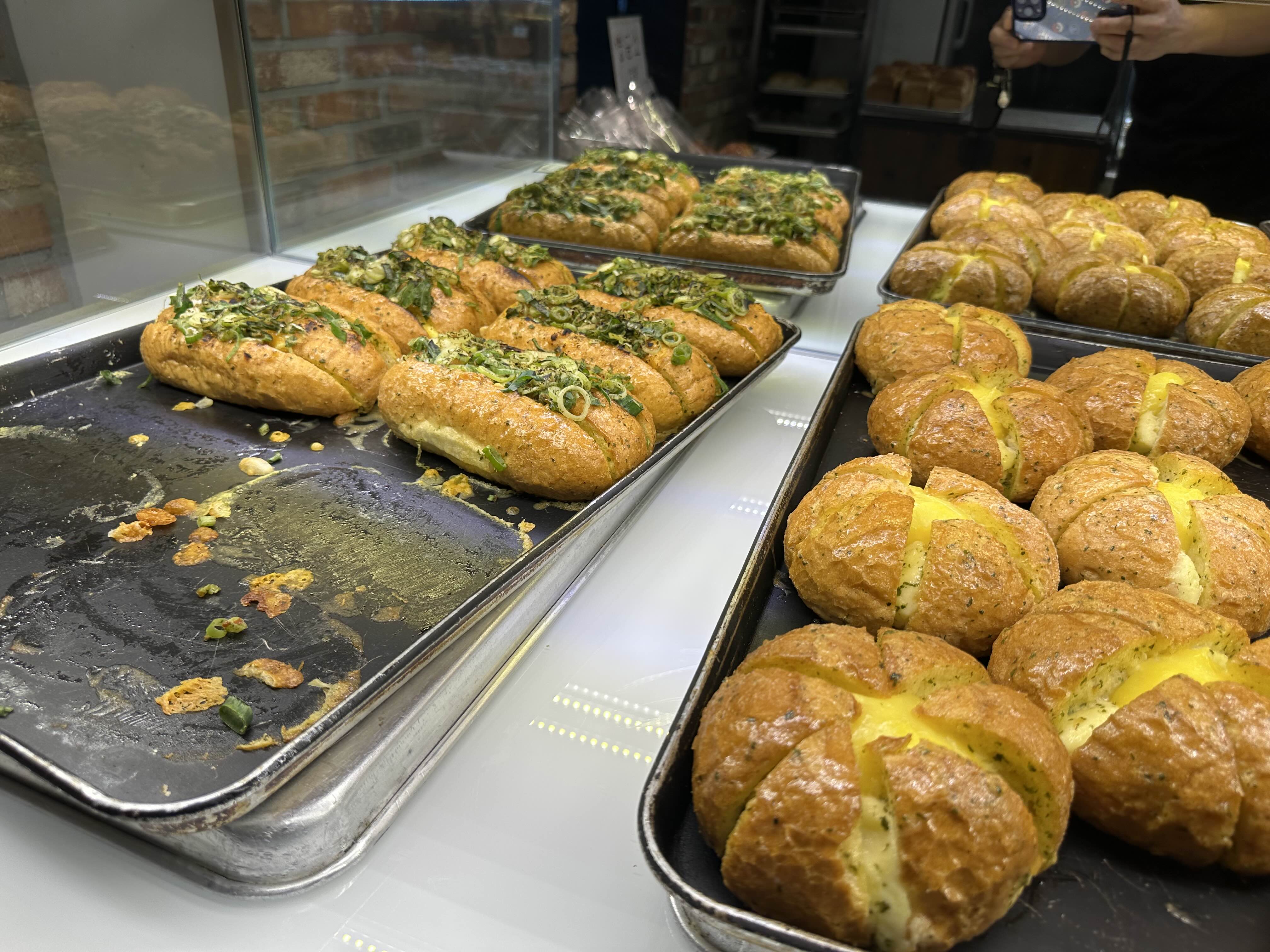 명란바게트와 대파가 듬뿍 올라간 대파빵....