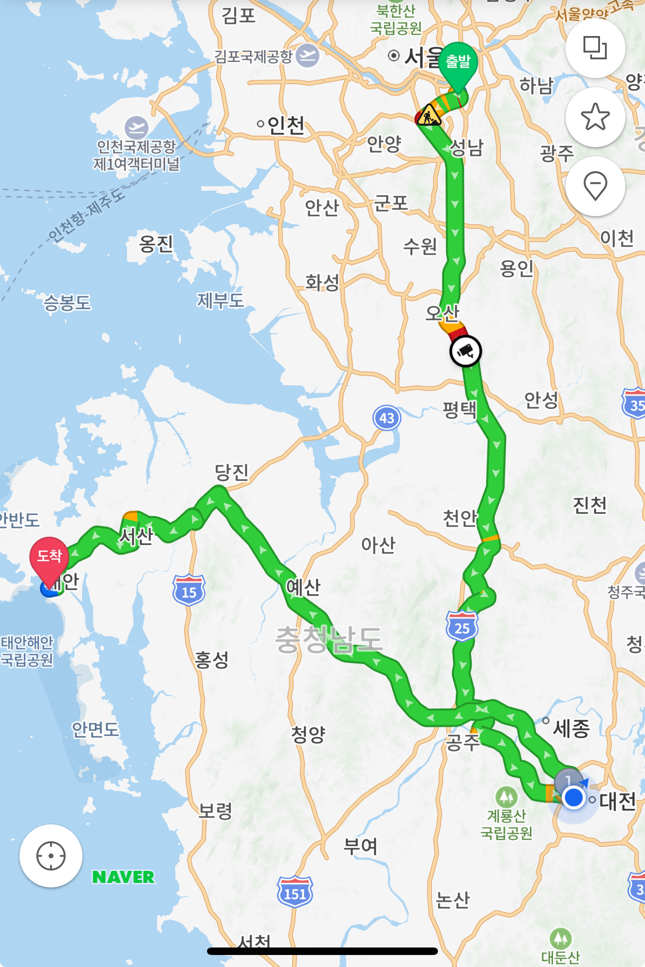 우선 대전에 계시는 장모님을 모신 후 예약한 펜션으로 이동 예정입니다.