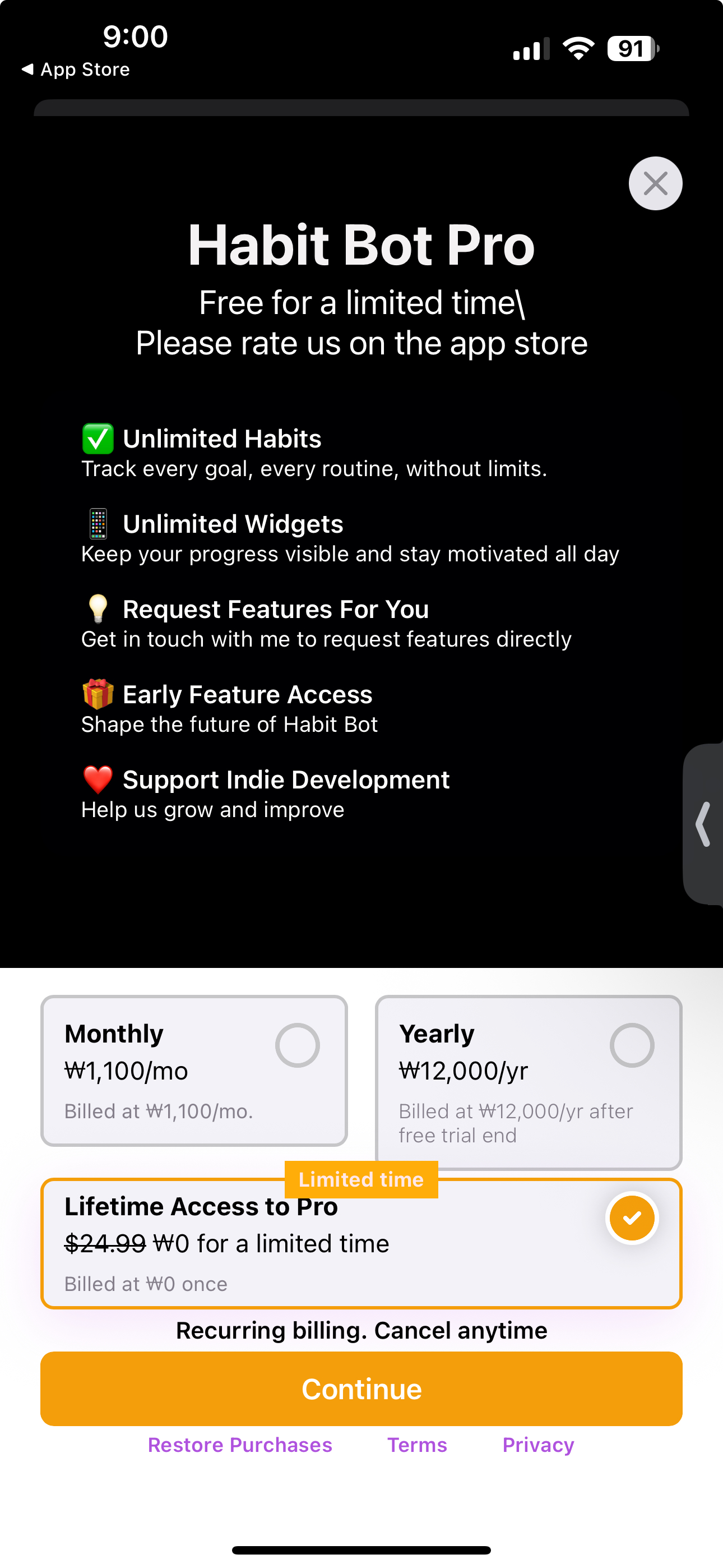 Habit Tracker - HabitBot 앱이 무료 다운로드 프로모션 중 입니다.