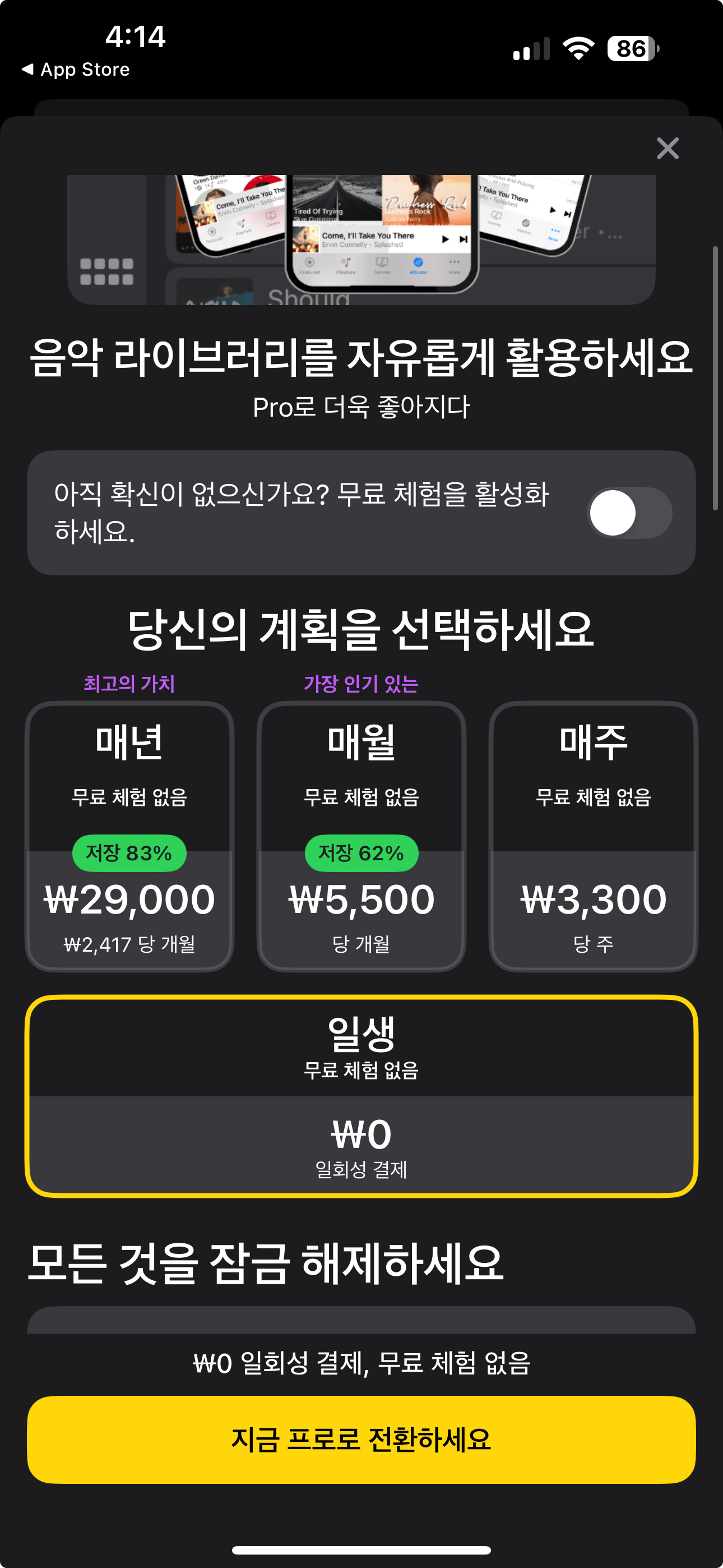 당신의 음악, 자유롭게. 당신의 경험, 업그레이드.