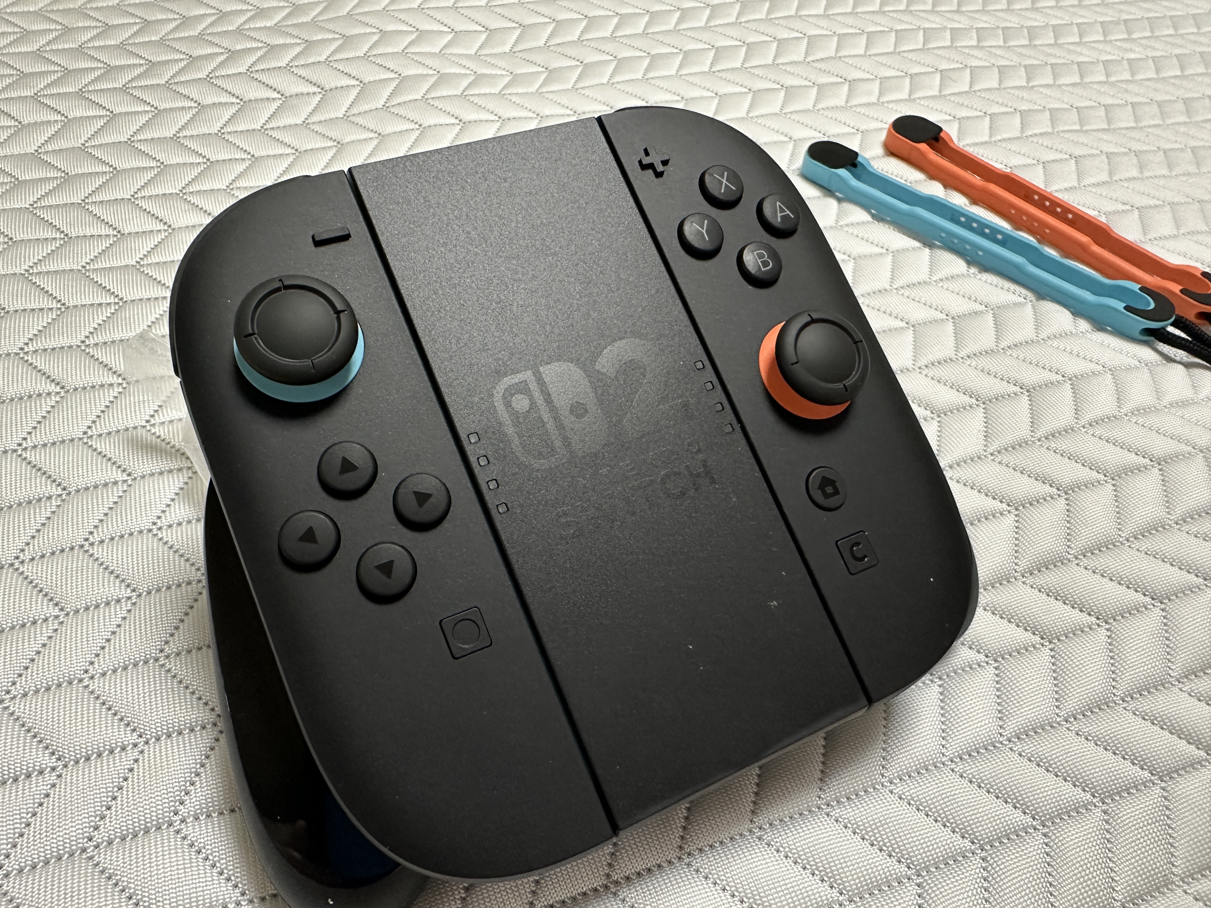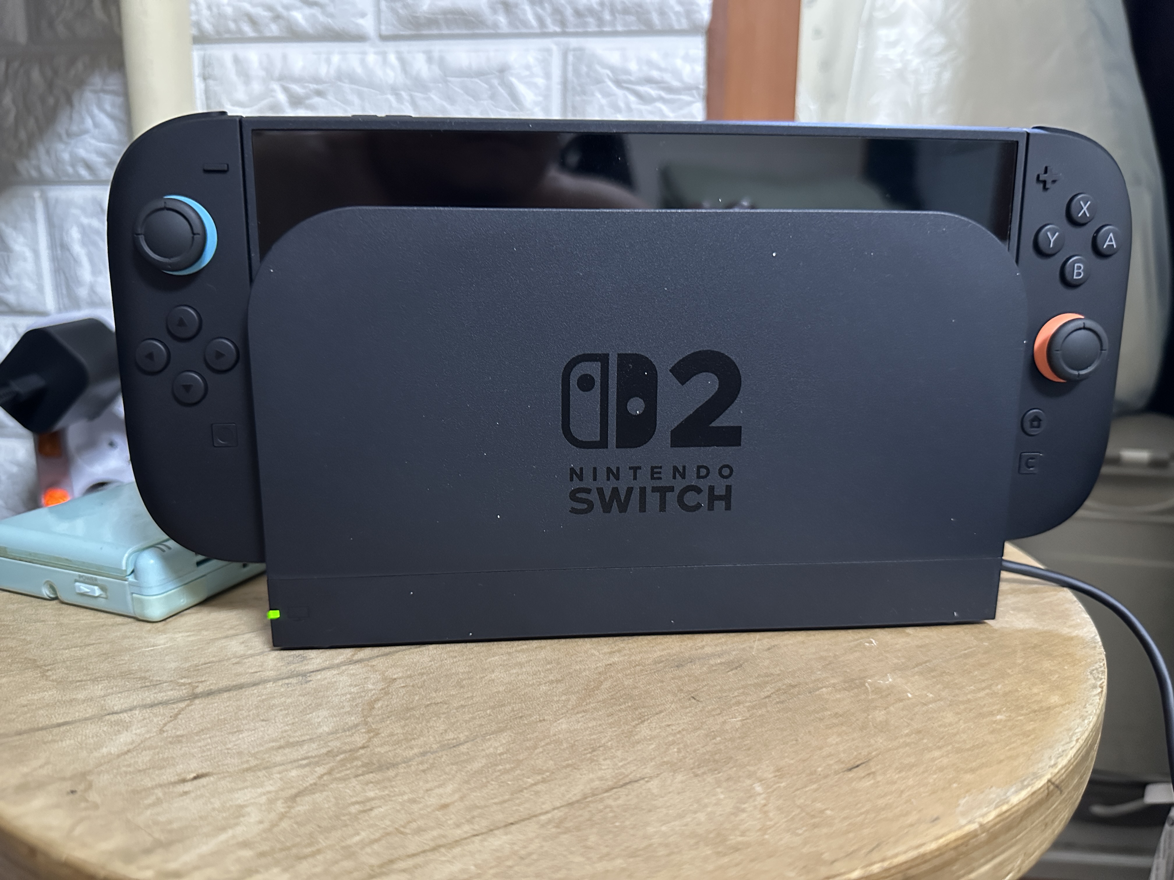 저는 제 옆자리에 조심스레 스위치2를 앉혀두었습니다.