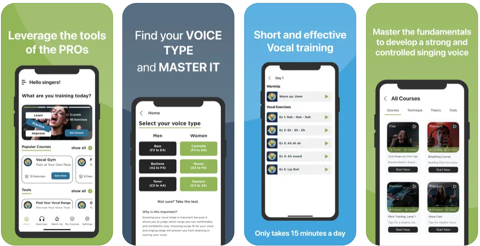 바리톤, 베이스, 테너, 알토, 메조, 소프라노, 메조소프라노 등 자신의 목소리 유형을 선택하고 연습을 맞춤 설정하여 더 나은 결과를 얻으세요. 자신의 목소리 유형을 잘 모르시겠다면 앱 내에서 테스트를 받아보세요.