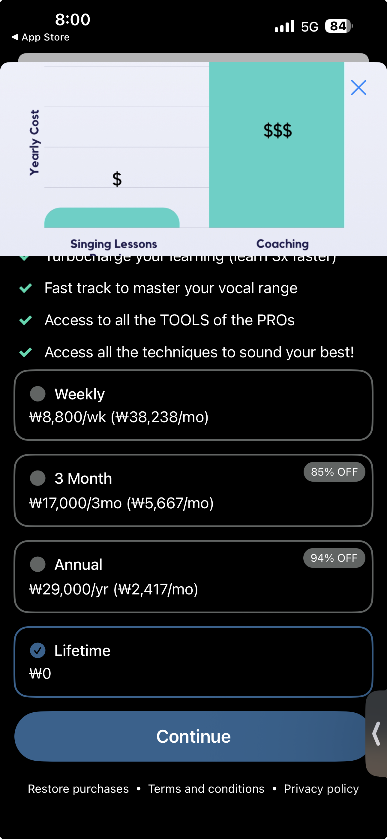 Singing Lessons: Learn to Sing 앱이 무료 다운로드 프로모션 중 입니다.