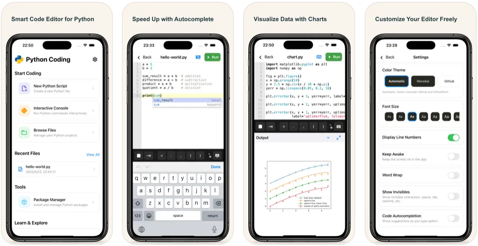 Python Coding – Code Python Anytime, Anywhere Master Python coding on your iPhone and iPad with Python Coding – a powerful, mobile-first Python IDE designed for learners, developers, and data enthusiasts. Write, run, and explore Python code with an