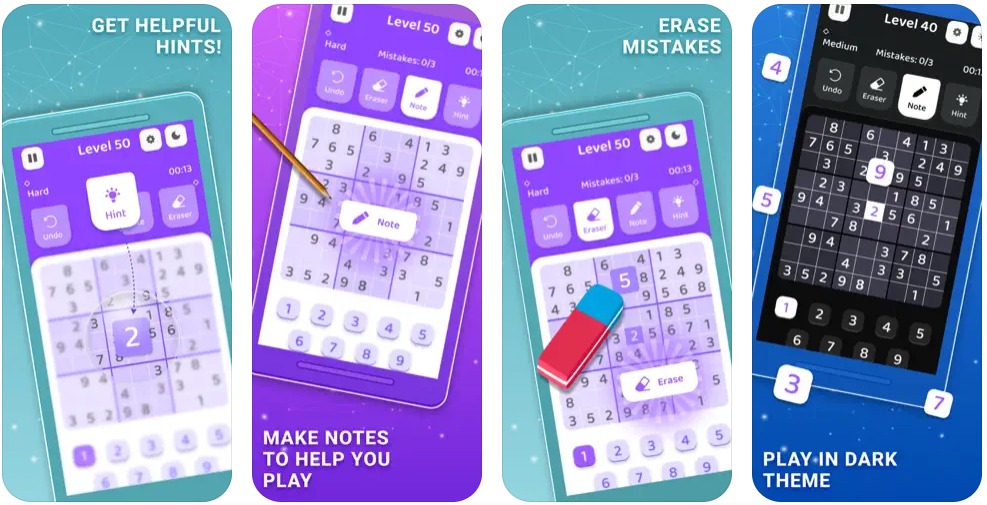 유용한 도구: 힌트, 자동 확인, 강조 표시된 중복 항목을 사용하여 더 쉽게 문제를 해결하거나 스스로 과제를 완료할 수 있습니다.