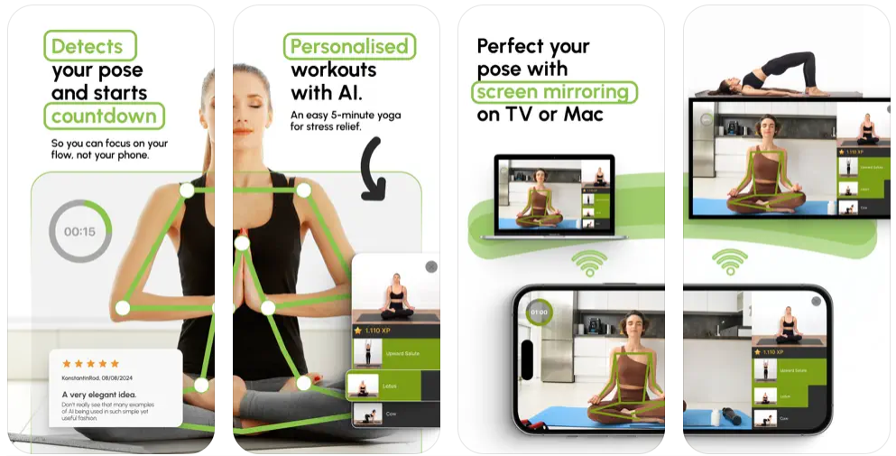 MirrorFit – 화면 미러링 및 포즈 인식을 갖춘 AI 기반 요가. MirrorFit으로 홈 요가 연습을 혁신하세요. 이 앱은 운동을 더 스마트하고 핸즈프리로, 완벽하게 개인화하도록 설계되었습니다. MirrorFit