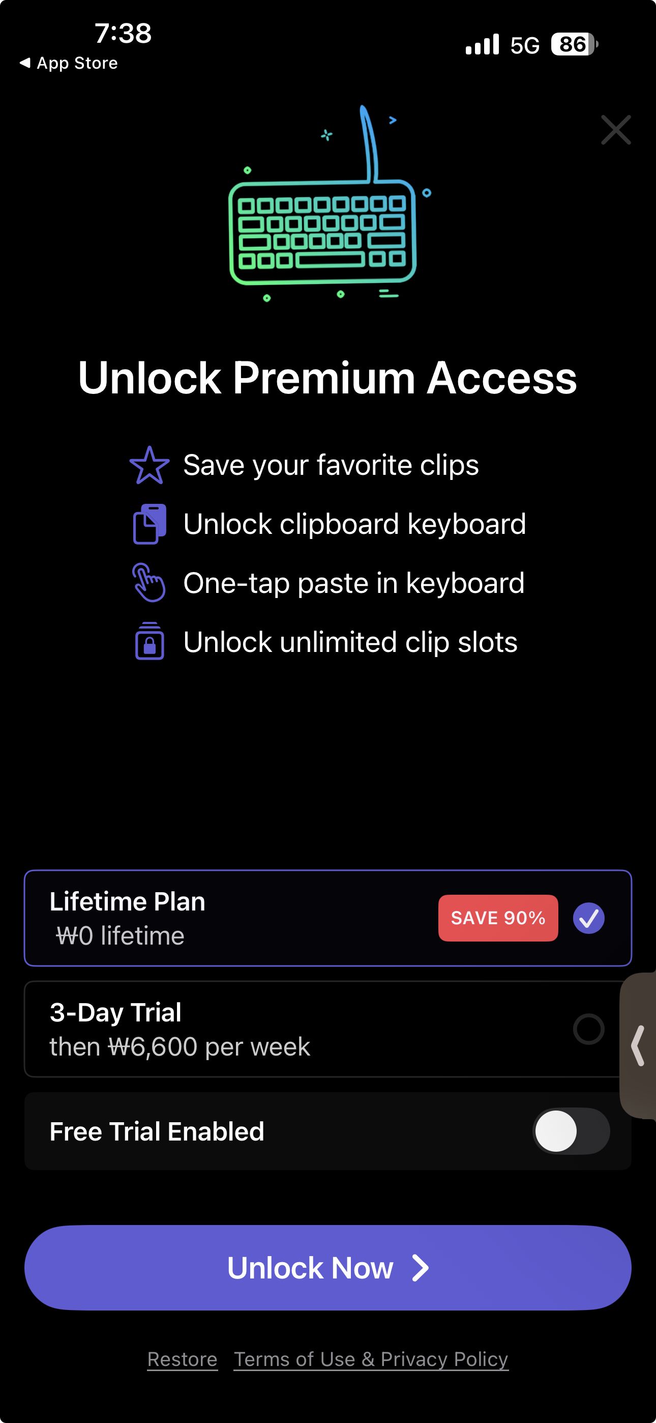 Clipboard : Keyboard Manager 앱이 무료 구독 프로모션 중 입니다.