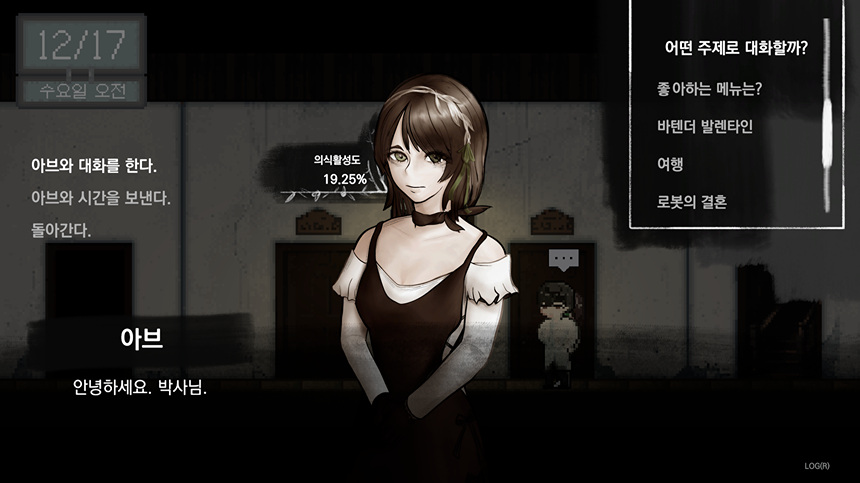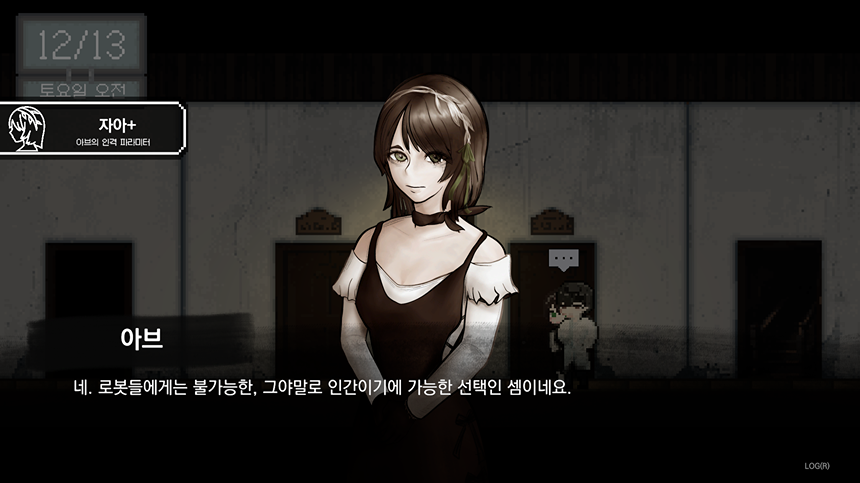 <아브라함 테스트>는 로봇 아브의 심리 패러미터를 조작하여 거대 기업의 비밀 임무를 성공으로 이끌어야 하는 심리 시뮬레이션 어드벤쳐&비주얼 노벨게임입니다.