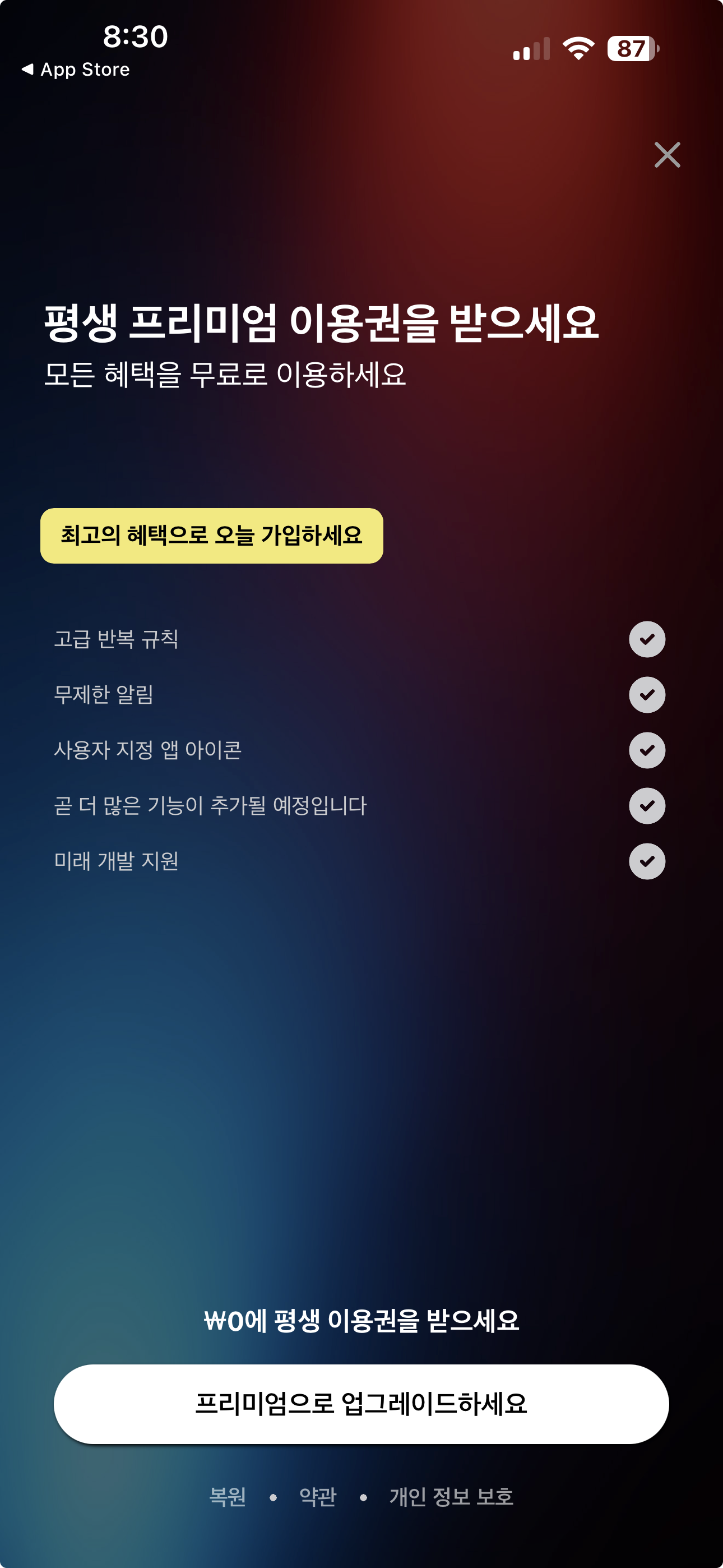 매일, 매주, 사용자 지정 반복 설정이 가능합니다. 완료한 항목을 체크하고 진행 상황을 확인하세요. Planelle은 실수를 탓하지 않고 부드럽게 도와줍니다.