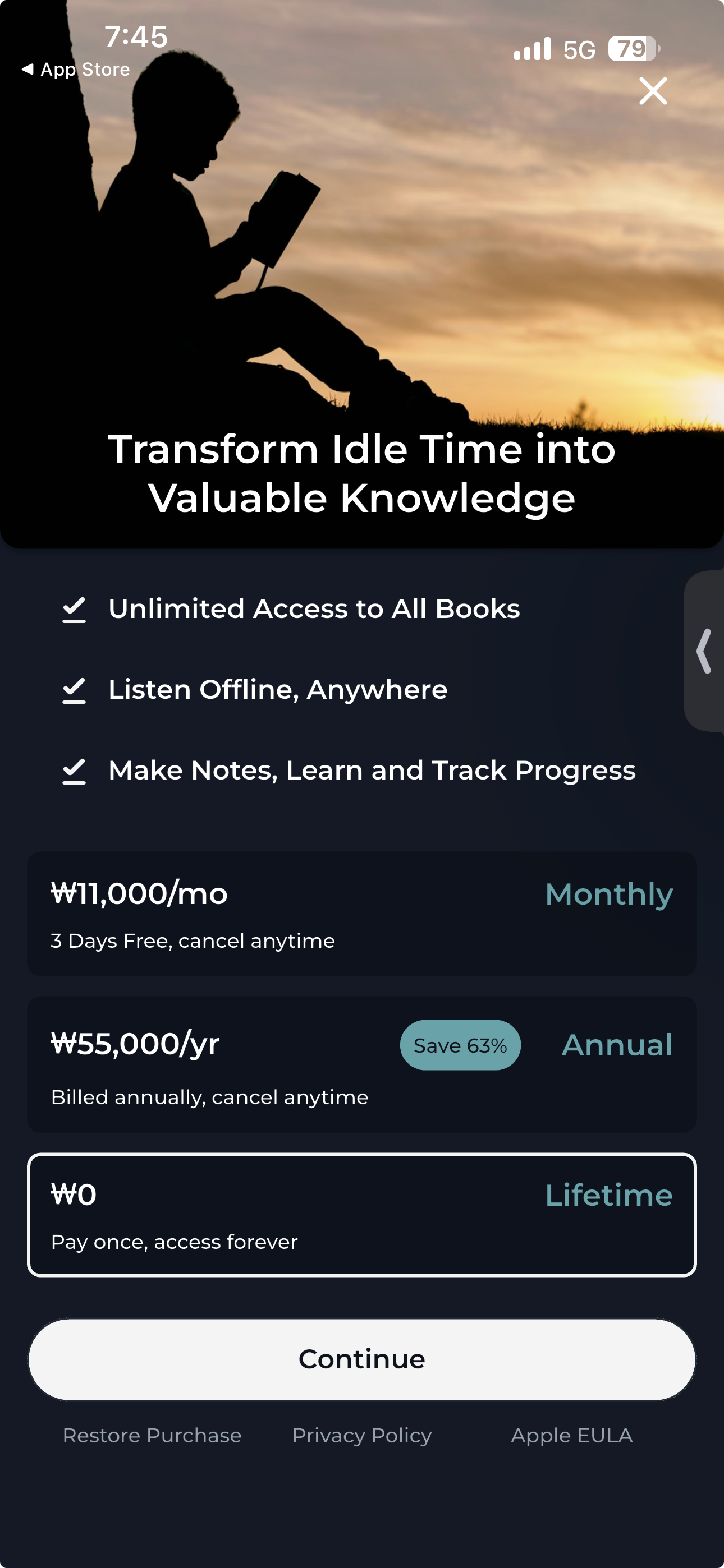 - 무제한 오디오북: 크레딧도 없고, 제한도 없습니다. 오로지 학습만 가능합니다.