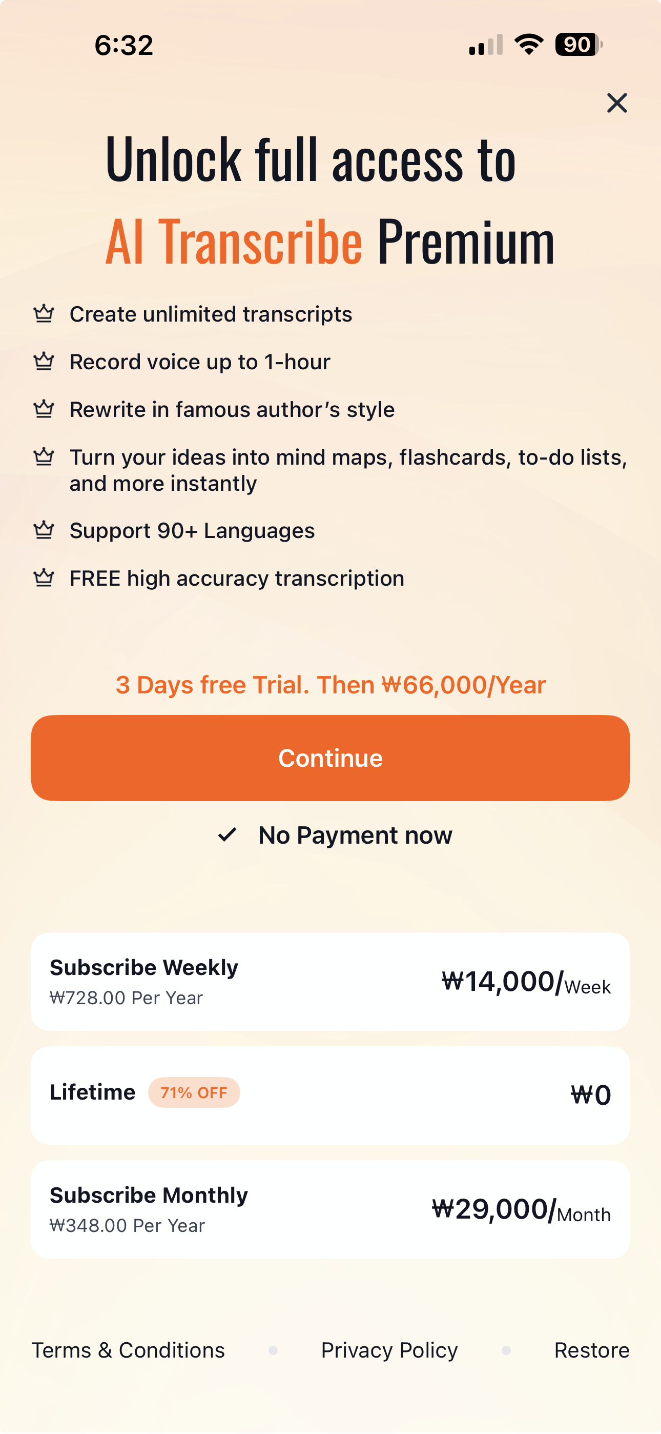 중요한 내용을 다시는 놓치지 마세요. AI Transcribe: Note Taker는 오디오 녹취, 회의 요약, 학습 자료 제작, 프레젠테이션 제작까지 90개 이상의 언어로 지원하는 올인원 AI 기반 생산성 도우미입니다.