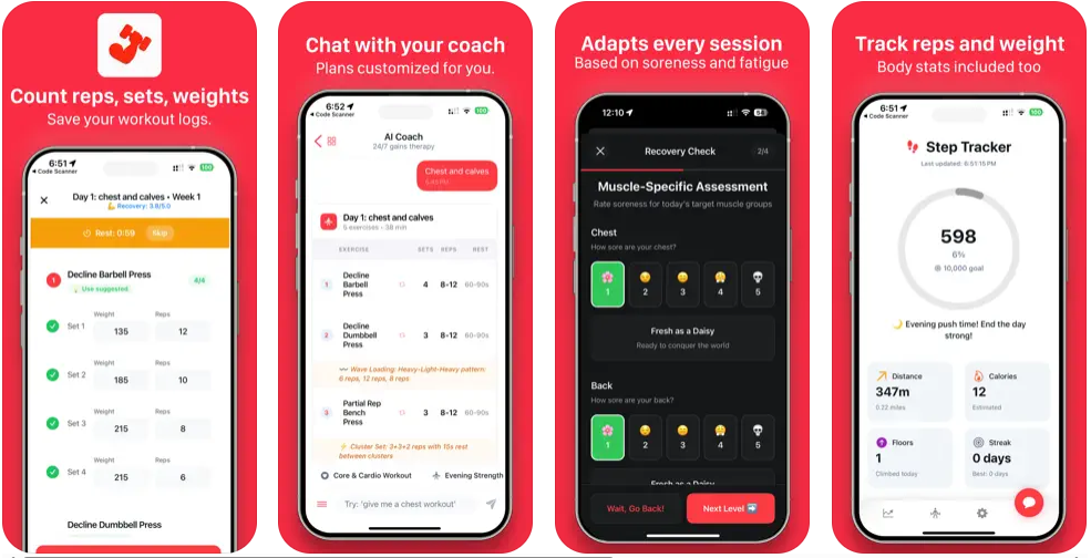 앱에 모든 운동을 기록하면, AI가 근육 자극과 그에 따른 적응을 극대화하는 데 필요한 데이터를 제공합니다. AI는 운동 성과를 바탕으로 향후 운동 계획을 세우고, 최대 효과를 위해 운동량을 조정합니다.