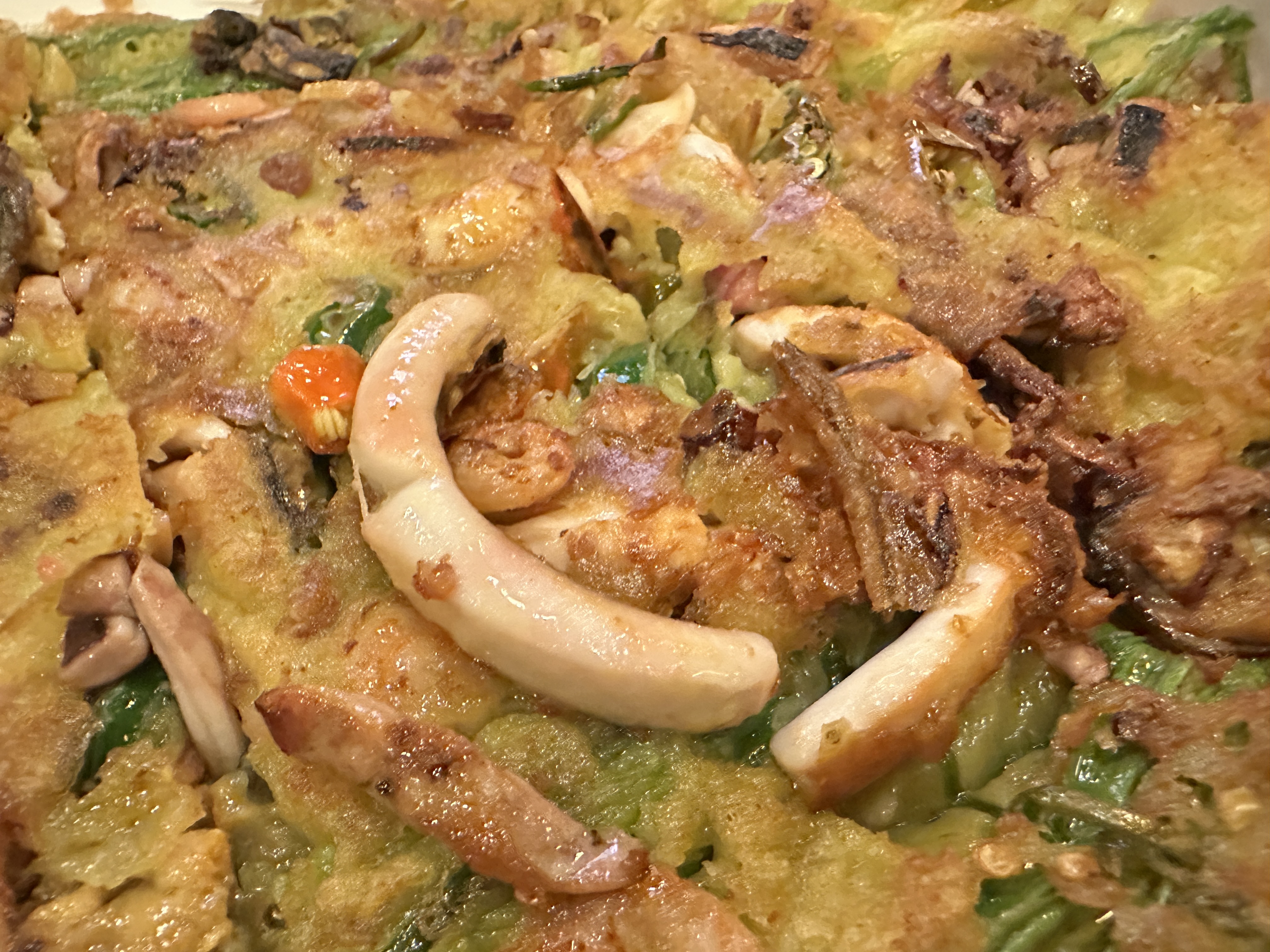 드디어 철판 위에서 구워진 해물파전 등장!