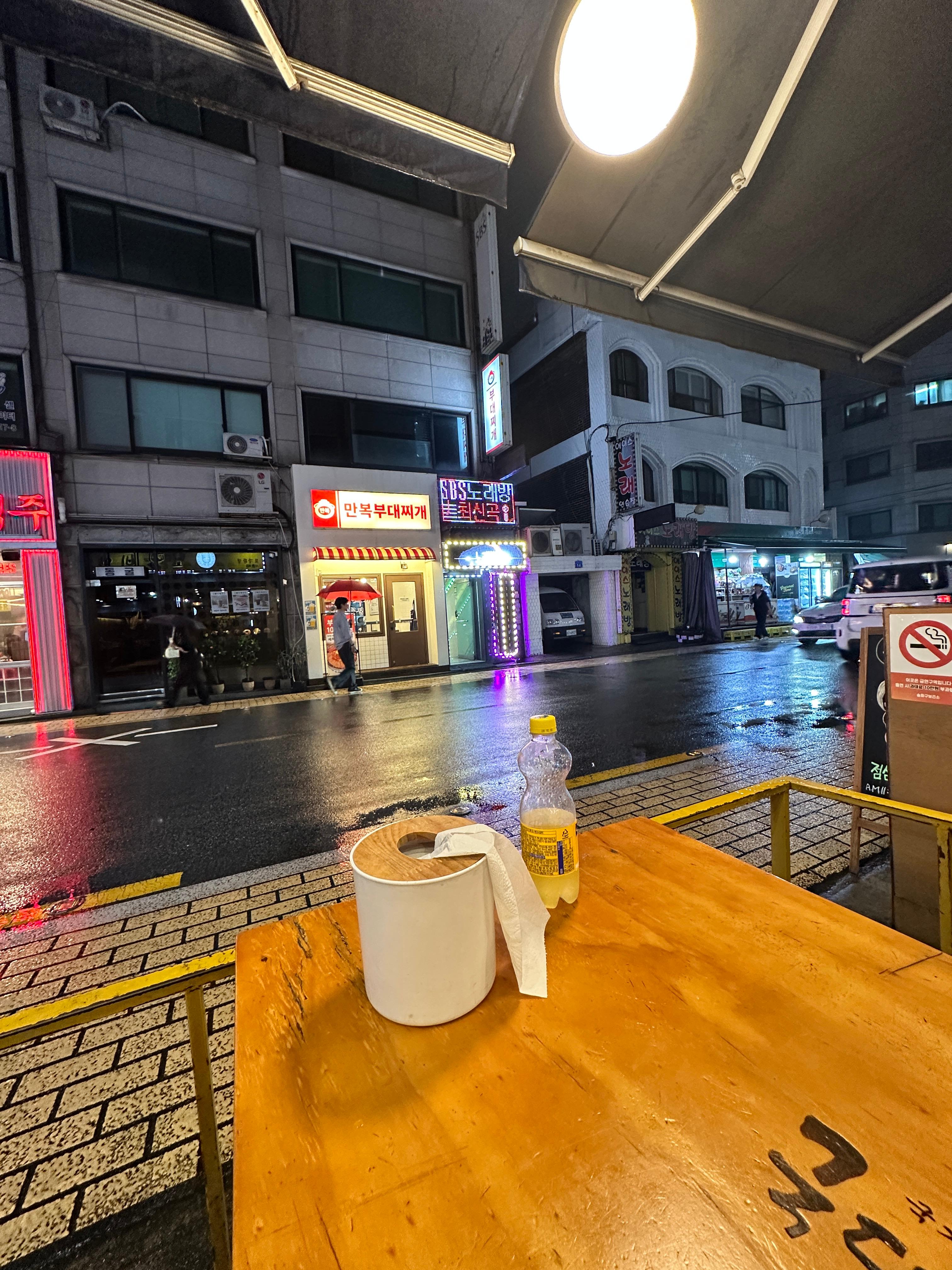 비도 오고 길게 있을 것도 아니기에 실내 대신 야외 자리를 선택!