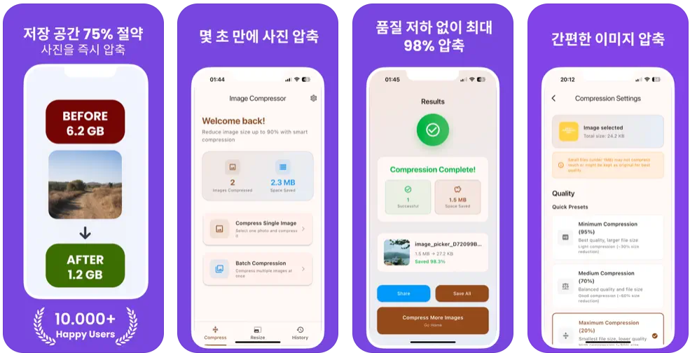 강력한 이중 기능 앱으로 이미지를 정밀하게 변환하세요. 저희 앱은 무손실 크기 조절과 지능형 압축 기능을 모두 제공합니다. 콘텐츠 크리에이터, 사진작가 또는 소셜 미디어용 이미지 최적화가 필요한 모든 분들에게 저희 앱은 단 몇 초 만에 전문가 수준의 결과물을 제공합니다.