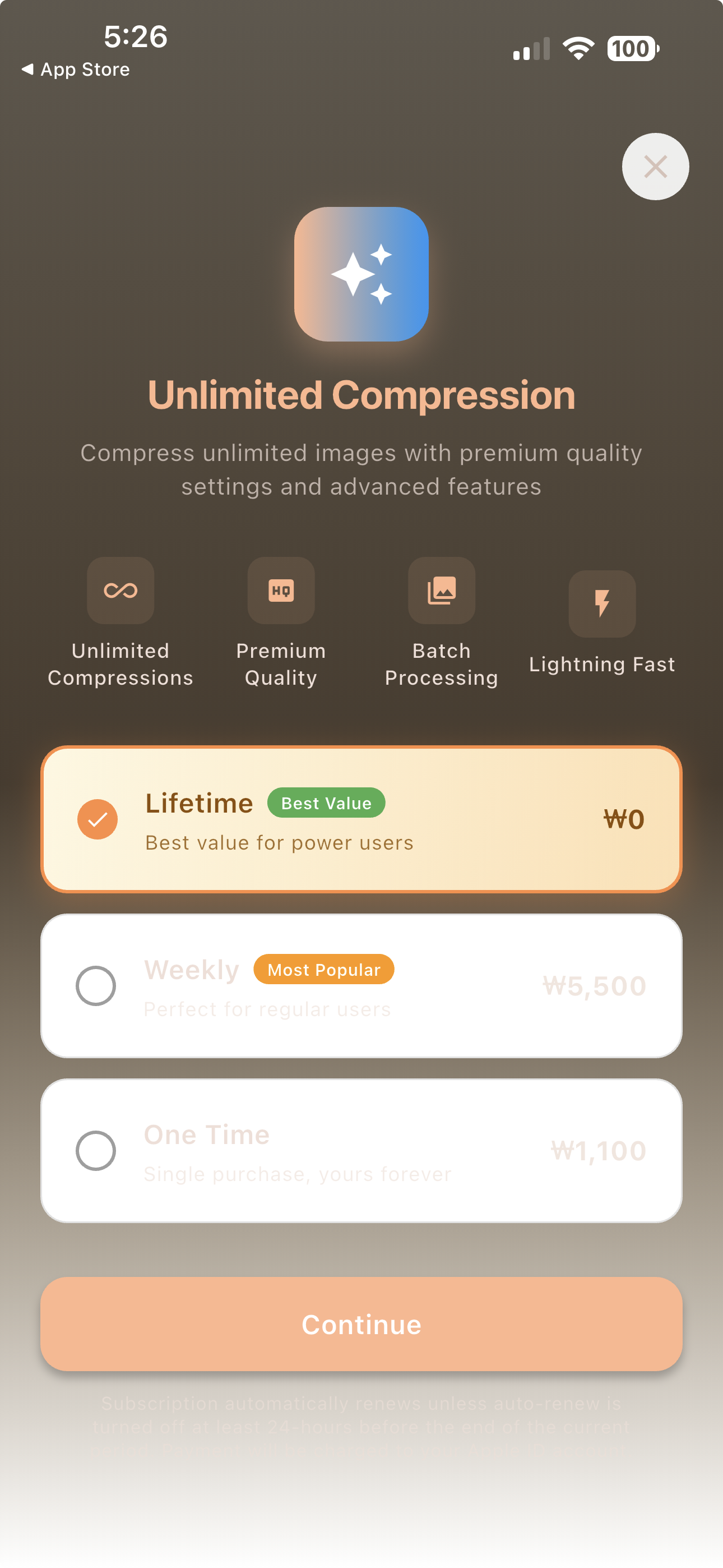 Smart image compression with instant size preview, offline premium access, and enhanced dark mode support for the best user experience.