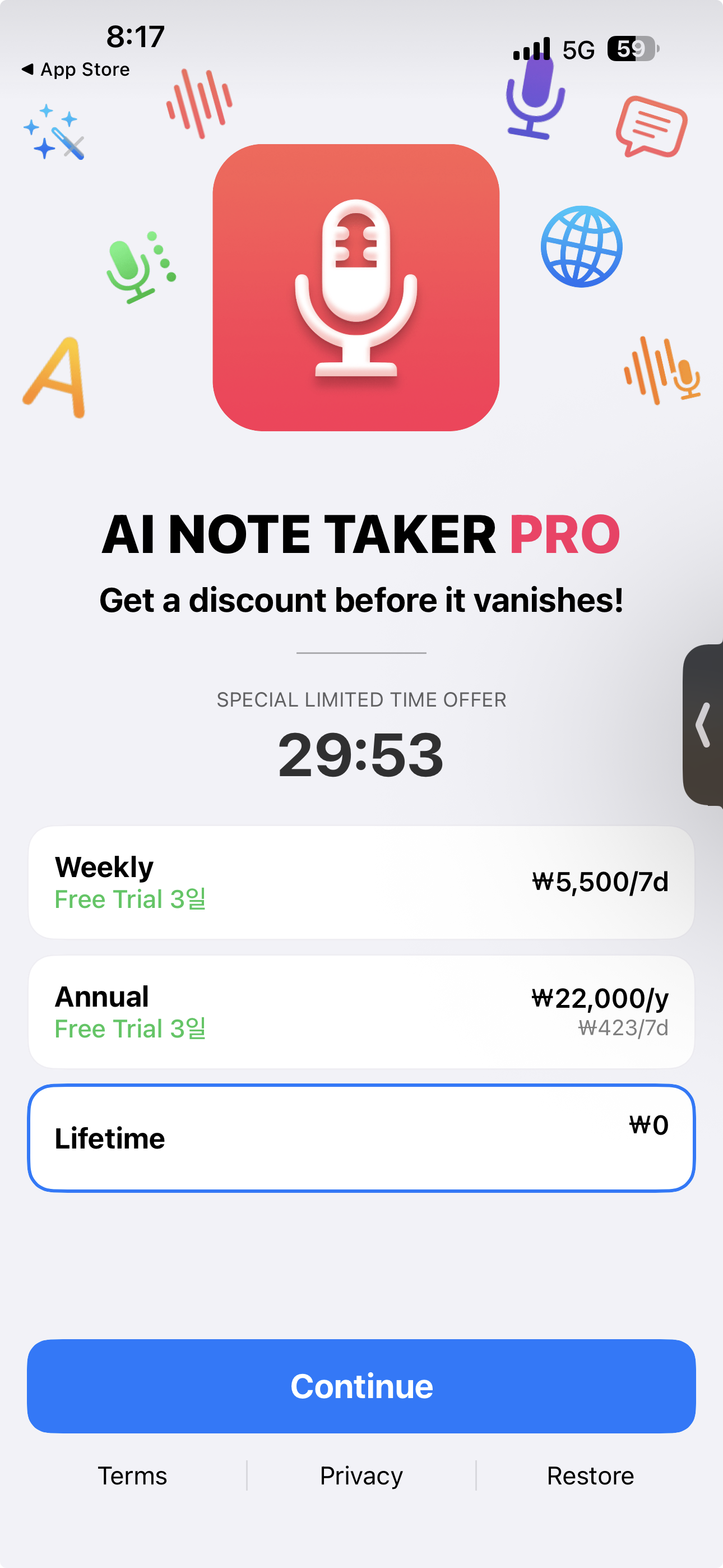 Speech To Text: AI Note Taker 앱이 무료 다운로드 프로모션 중 입니다.