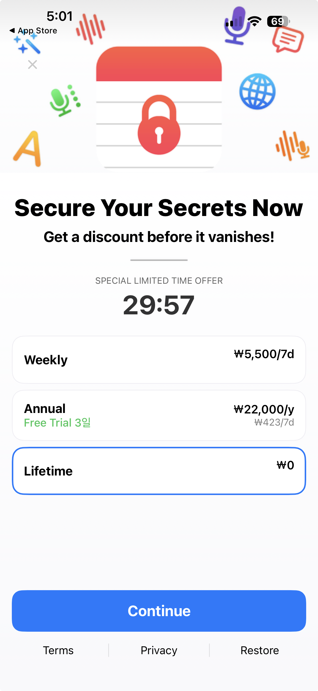 Lock Notes: Private Journal 앱이 무료 다운로드 프로모션 중 입니다.