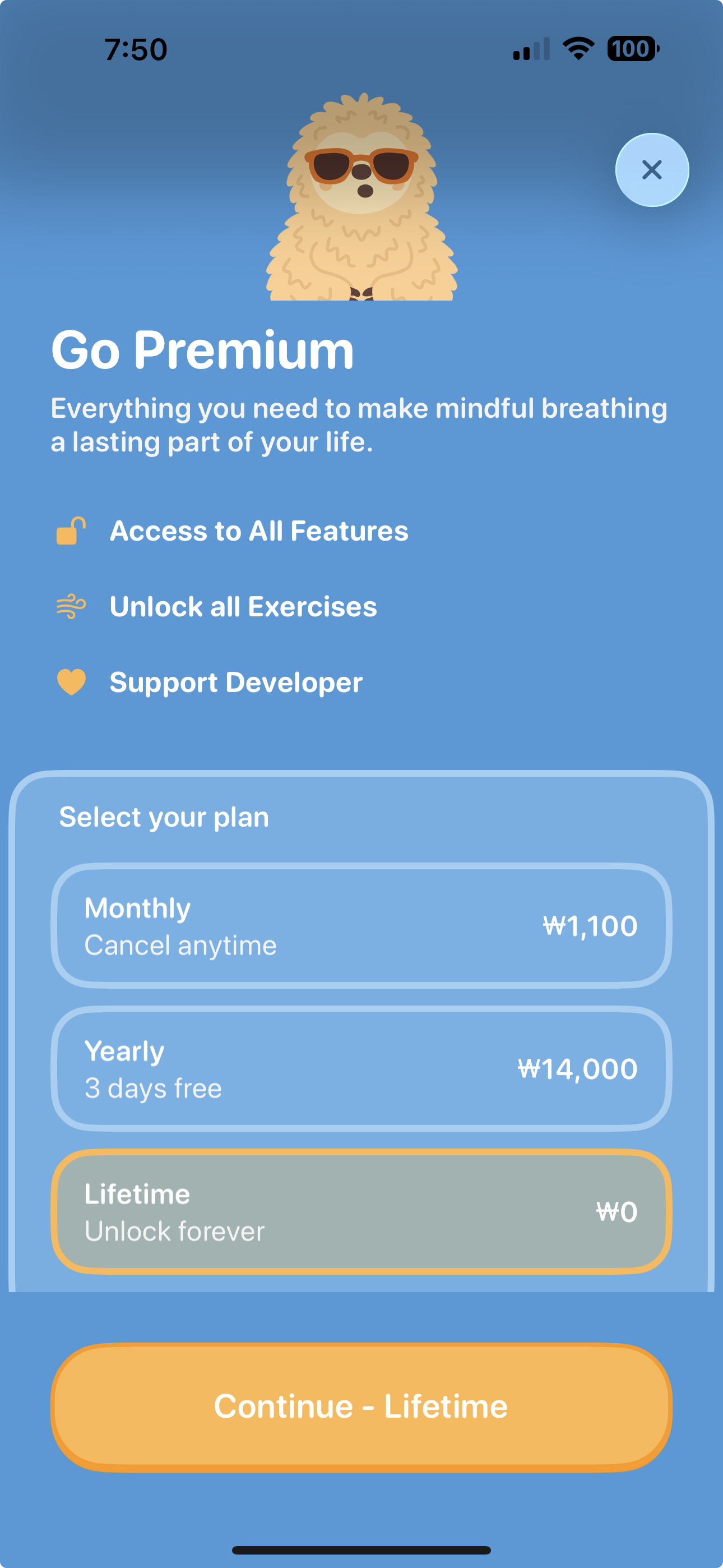 ※ 앱을 다운로드하고, 실행 후, 잠금 된 콘텐츠를 선택하고, 모든 유료 옵션을 확인한 후, 평생 $0.00 옵션을 선택하여 사용하세요.