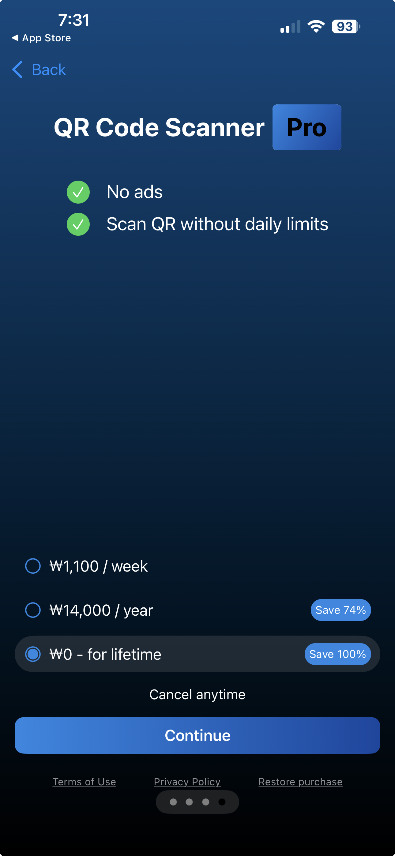QR 코드 스캐너 앱은 무료입니다. 평생 무료로 사용하실 수 있습니다. 하지만 QR 코드 스캐너는 구독자에게 프리미엄 기능을 제공합니다. 업그레이드를 구매하시면 추가 기능을 이용하실 수 있습니다.