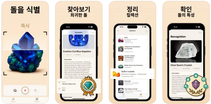야외 발견부터 주얼리 공방까지 이 앱은 돌을 하나하나 쉽게 식별하고 학습하며 지식을 쌓게 해 줍니다. Rock ID, Gem Mineral Crystal Scanner, AI 파인더와 가이드로 다이아몬드, 루비 등을 식별, 분석, 테스트할 수 있습니다.