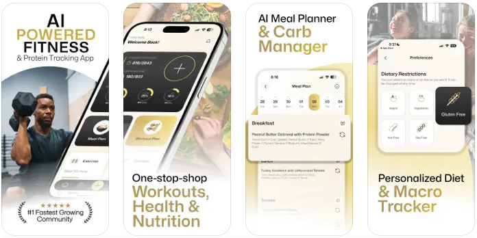 주요 기능으로는 칼로리 및 매크로 추적, 식사 계획 및 식사 준비 계획, AI 운동 계획 및 트레이닝 제안, 운동 추적 기능, 칼로리 소모량 추적, 진행 상황 사진, 신체 측정 추세를 제공하는 운동 앱이 있습니다. 운동 계획을 세우고, 헬스장 운동 프로그램을 따르거나, "언제든지 운동" 세션을 통해 유연성을 유지할 수 있습니다. 칼로리 단백질 추적기를 사용하여 일일 단백질 목표를 달성하고, 탄수화물 추적기를 사용하여 필요에 따라 저탄수화물 식단을 실천할 수 있습니다.