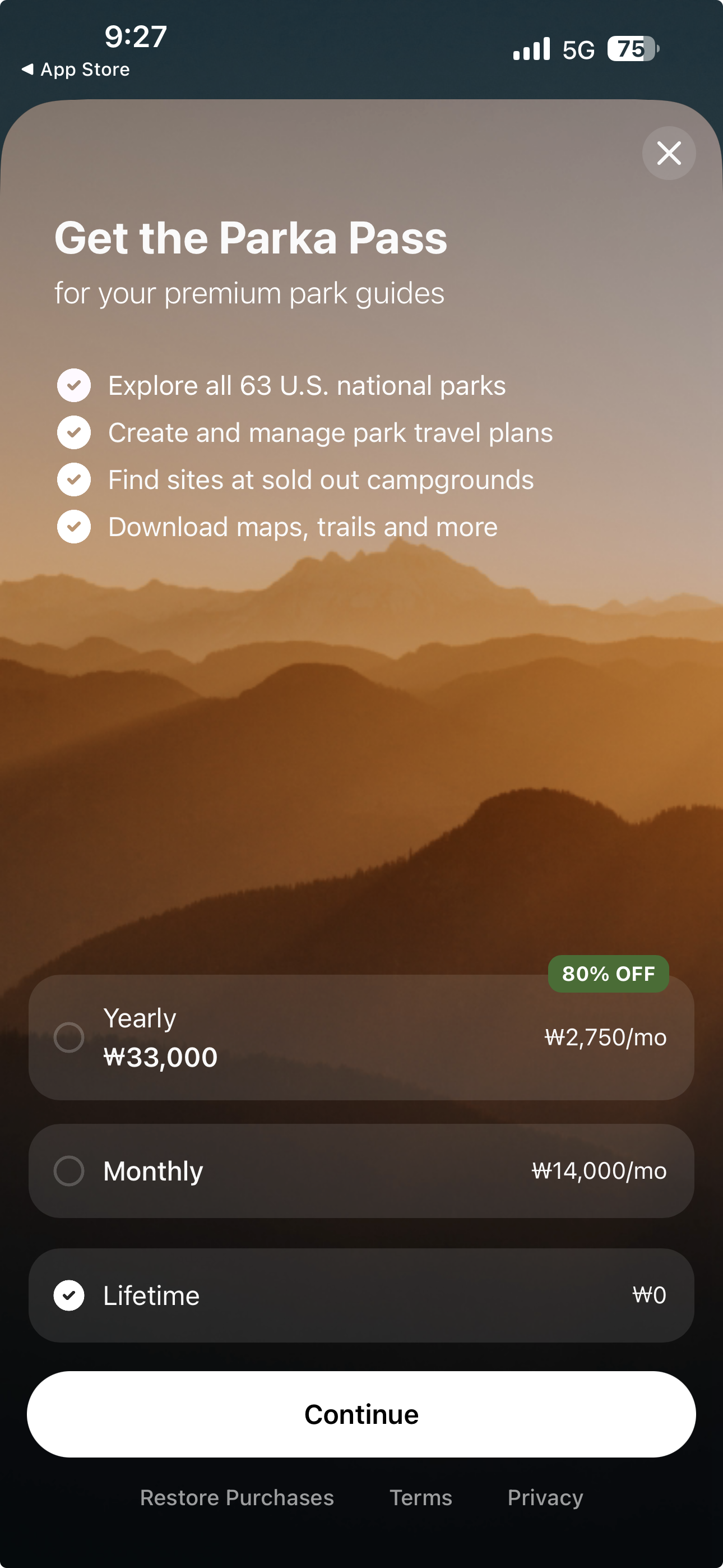 Parka: National Park Planner 앱이 무료 다운로드 프로모션 중 입니다.