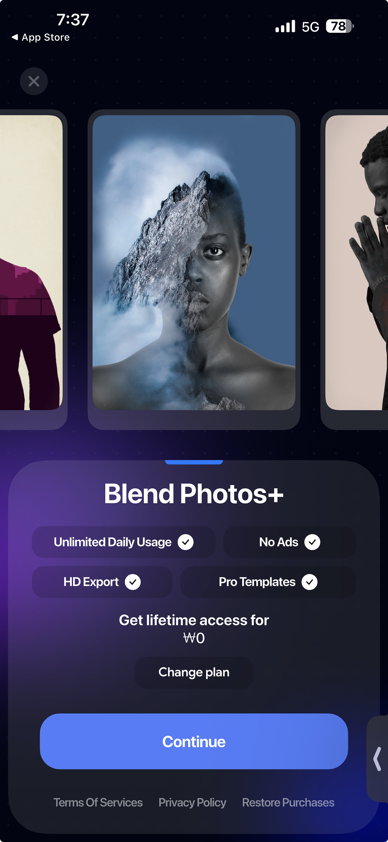 Blend Photos 앱이 무료 다운로드 프로모션 중 입니다.