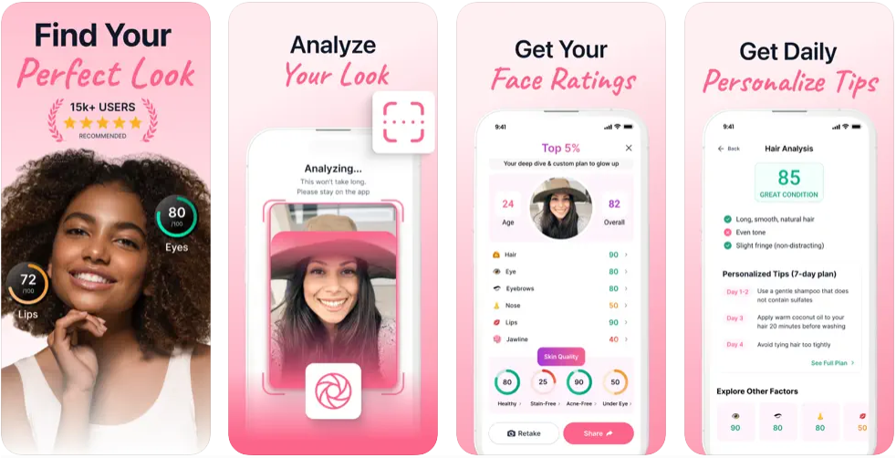 - 전문가 팁: 점수가 낮은 부위를 개선하는 데 도움이 되는 맞춤형 팁을 받아보세요. 주름을 자연스럽게 줄이는 기술을 포함하여 자연스러운 개선에 중점을 두고 있습니다.
