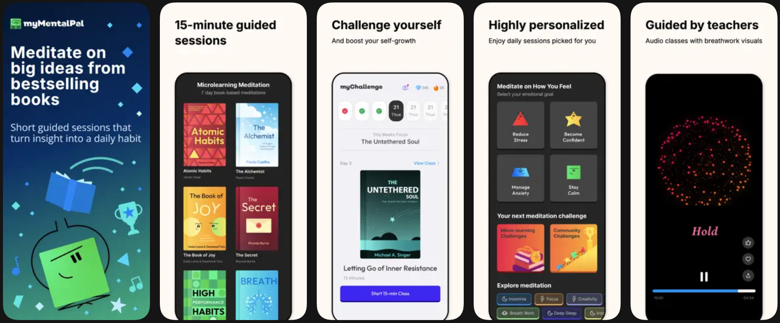 myMentalPal을 만나보세요 — 최초의 책 기반 명상 앱! 베스트셀러 책에서 큰 아이디어를 명상하고 매일 실천할 수 있도록 도와드립니다.