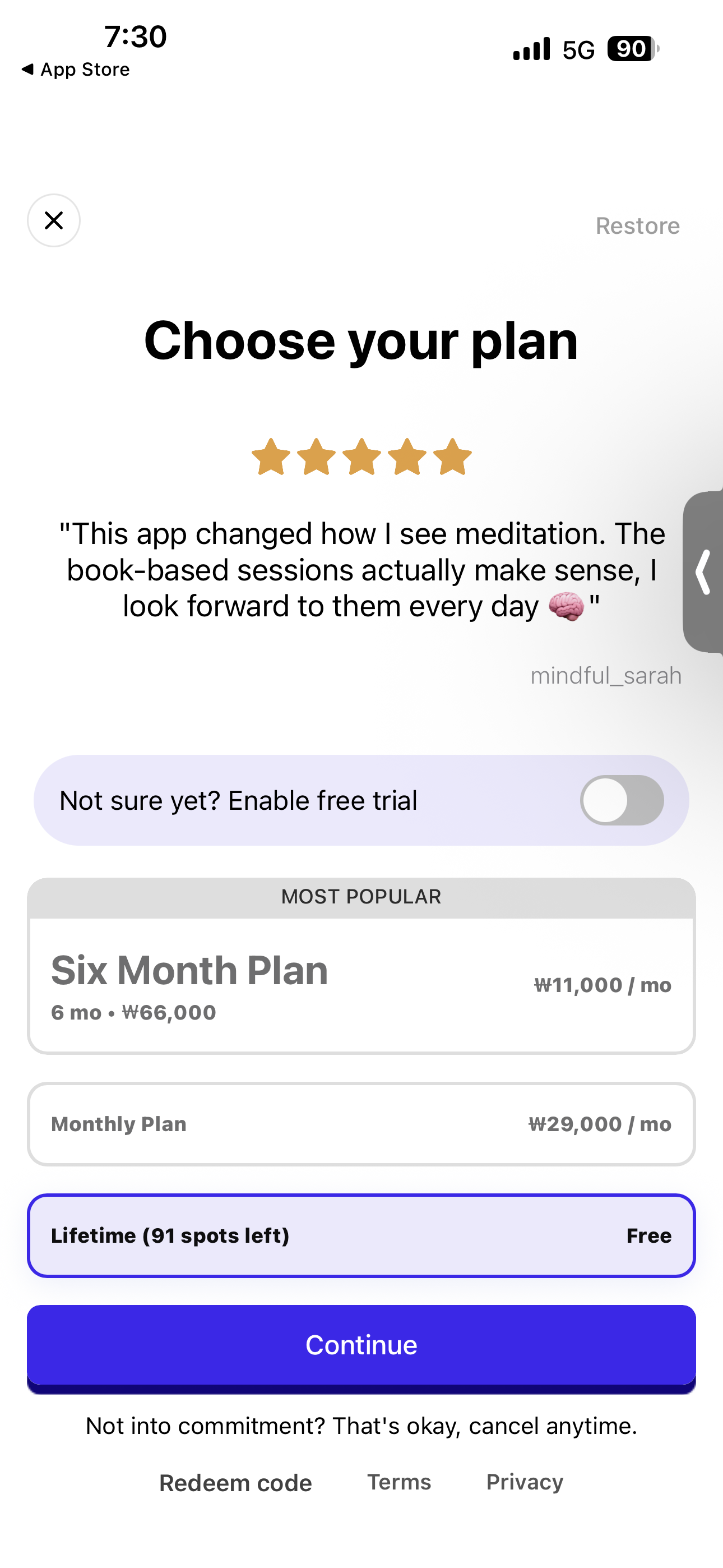 App Store 리뷰 "최고의 정신 건강 앱... 직장에서 집중력이 크게 향상되었습니다."