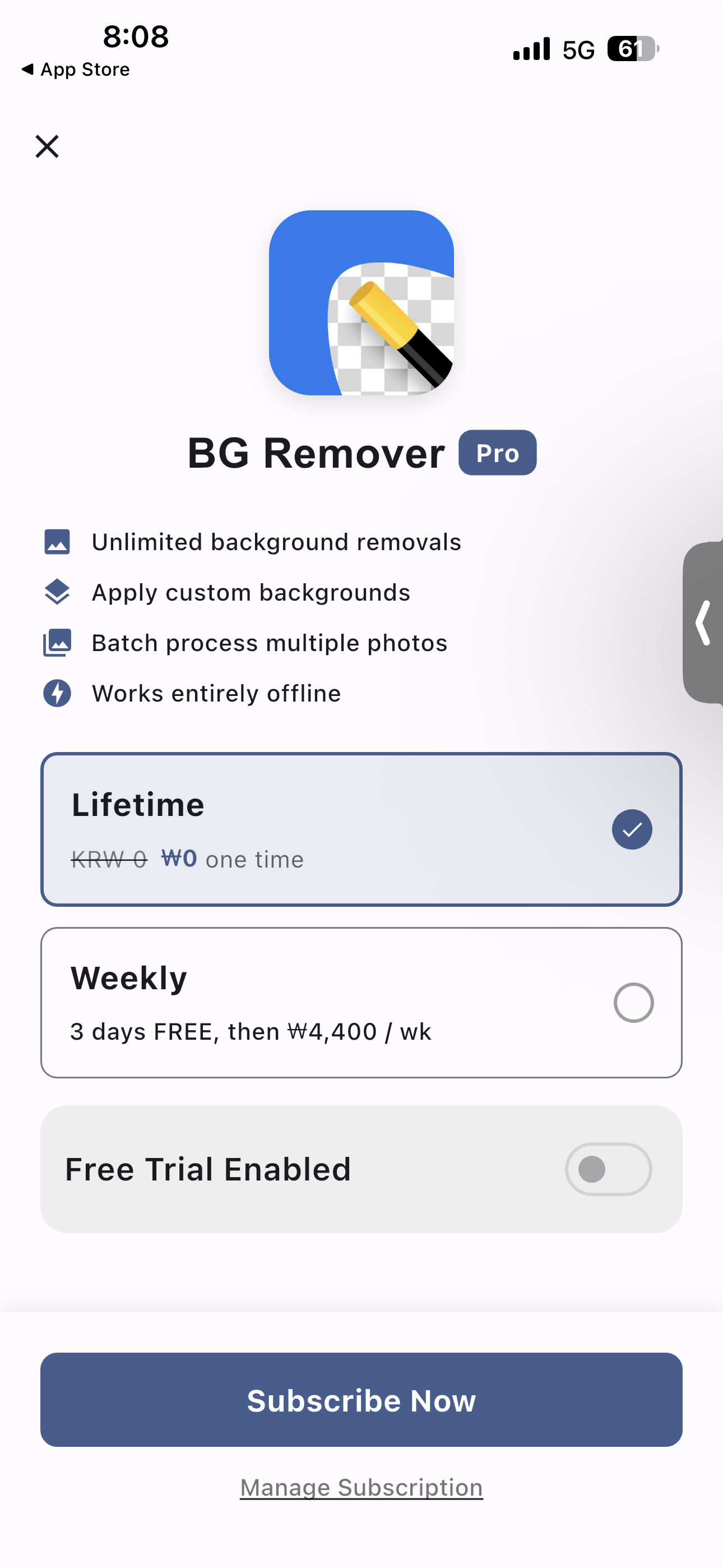 Remove BG・Background Remover 앱이 무료 다운로드 프로모션 중 입니다.